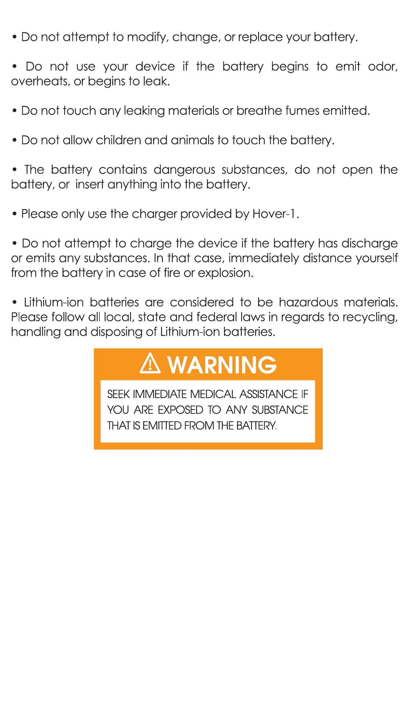 • Please only use the charger provided by Hover-I .
