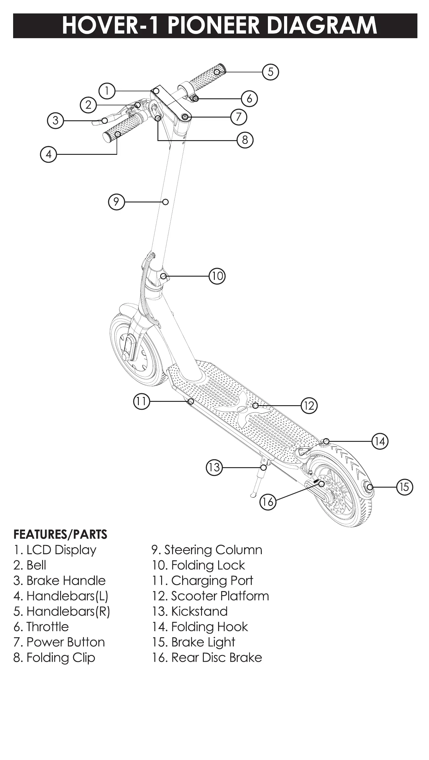 Hover-1 PIONEER - Pioneer Scooter Diagram; Features and Parts Identification