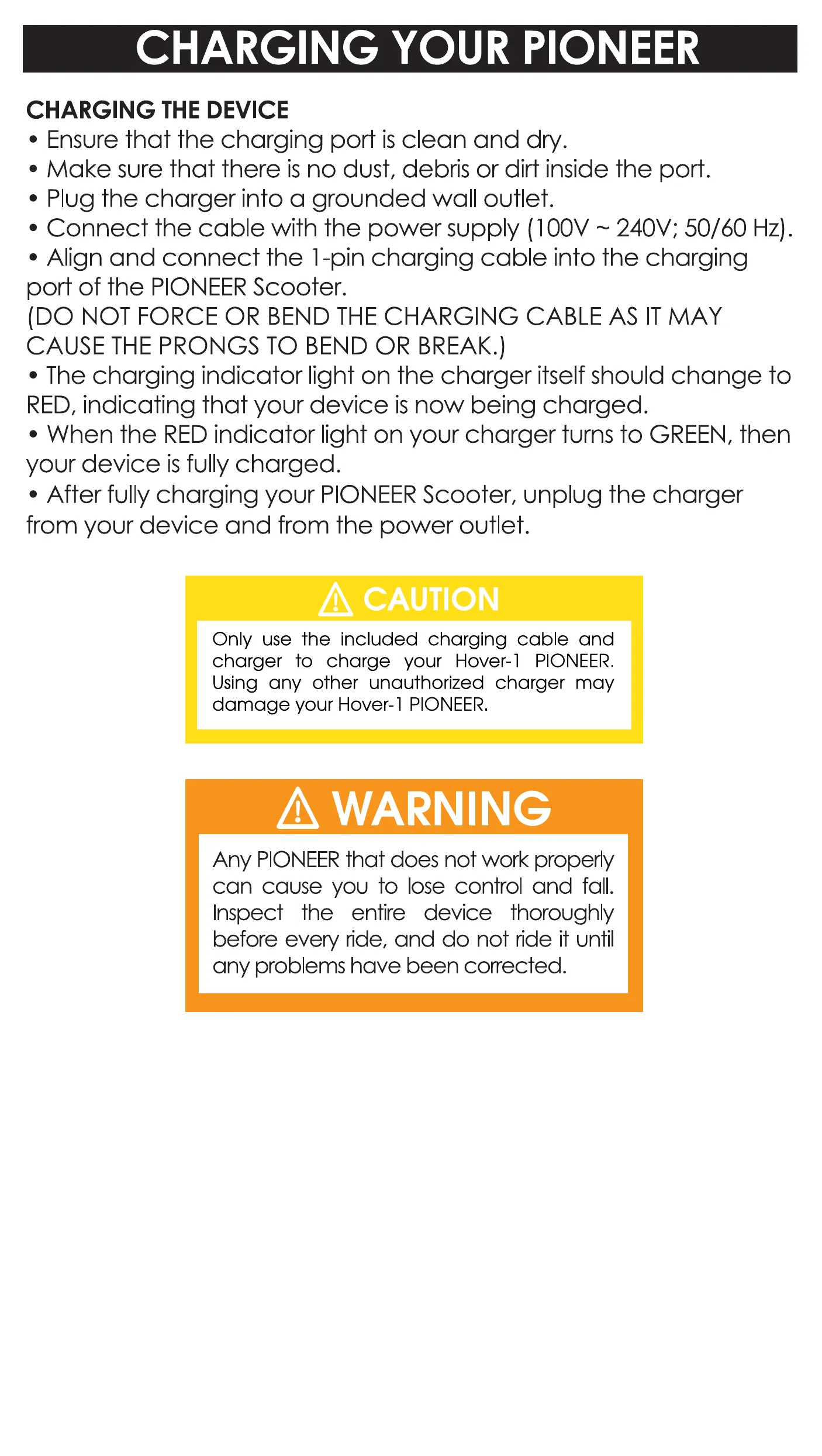 (DO NOT FORCE OR BEND THE CHARGING CABLE AS IT MAY
