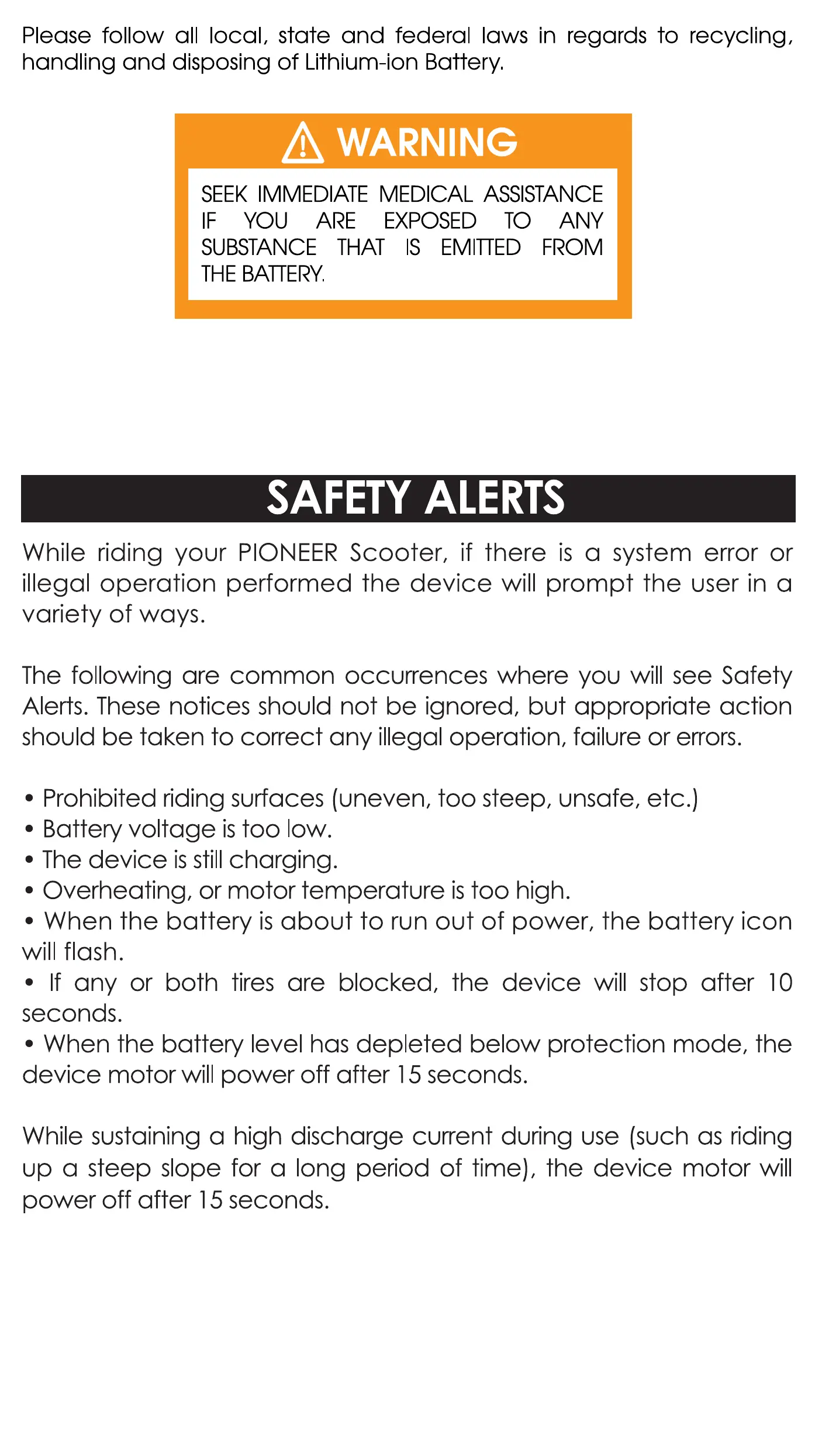 While riding your PIONEER Scooter, if there is a system error or