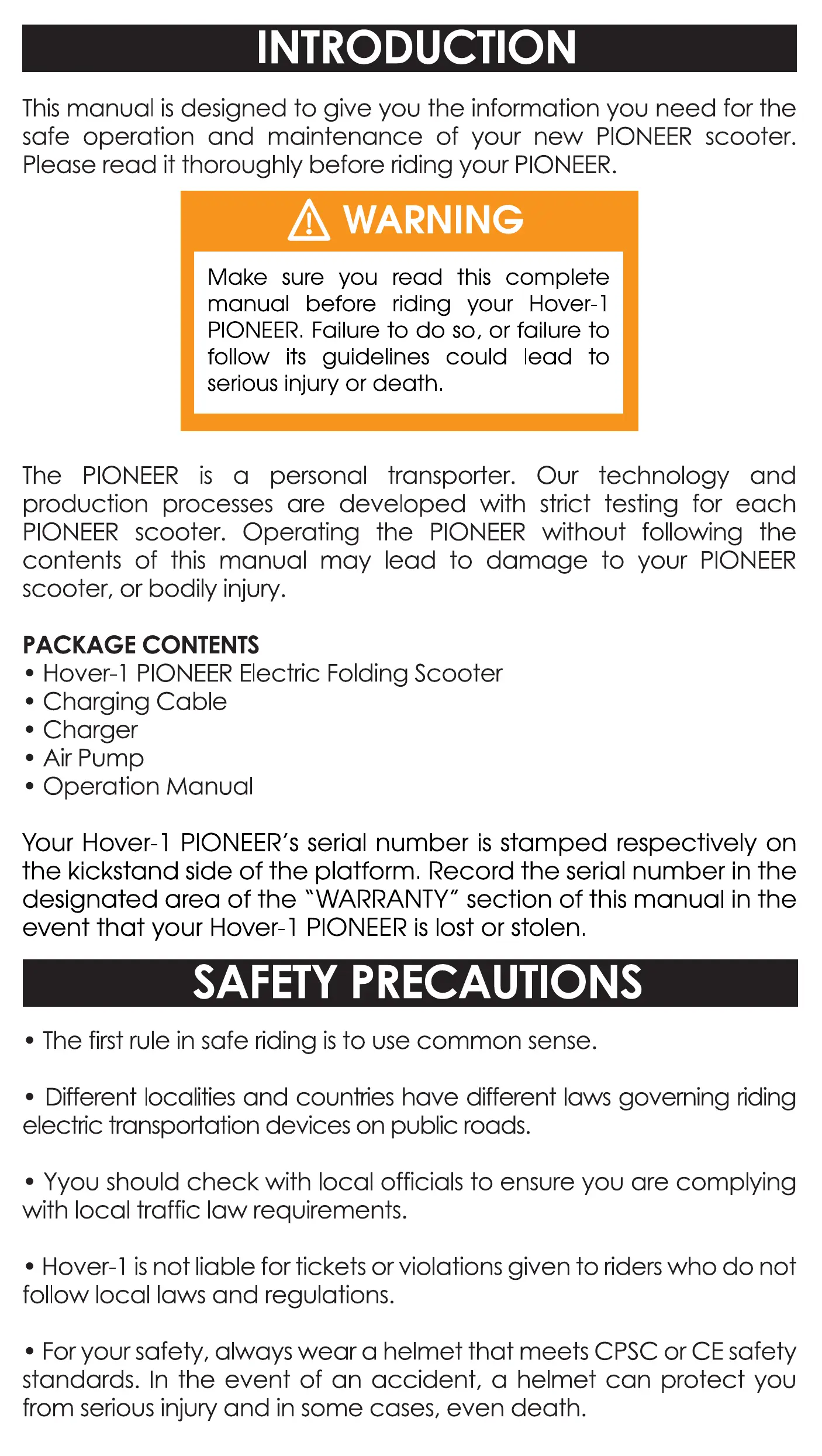 • Hover-I is not liable for tickets or violations given to riders who do not
