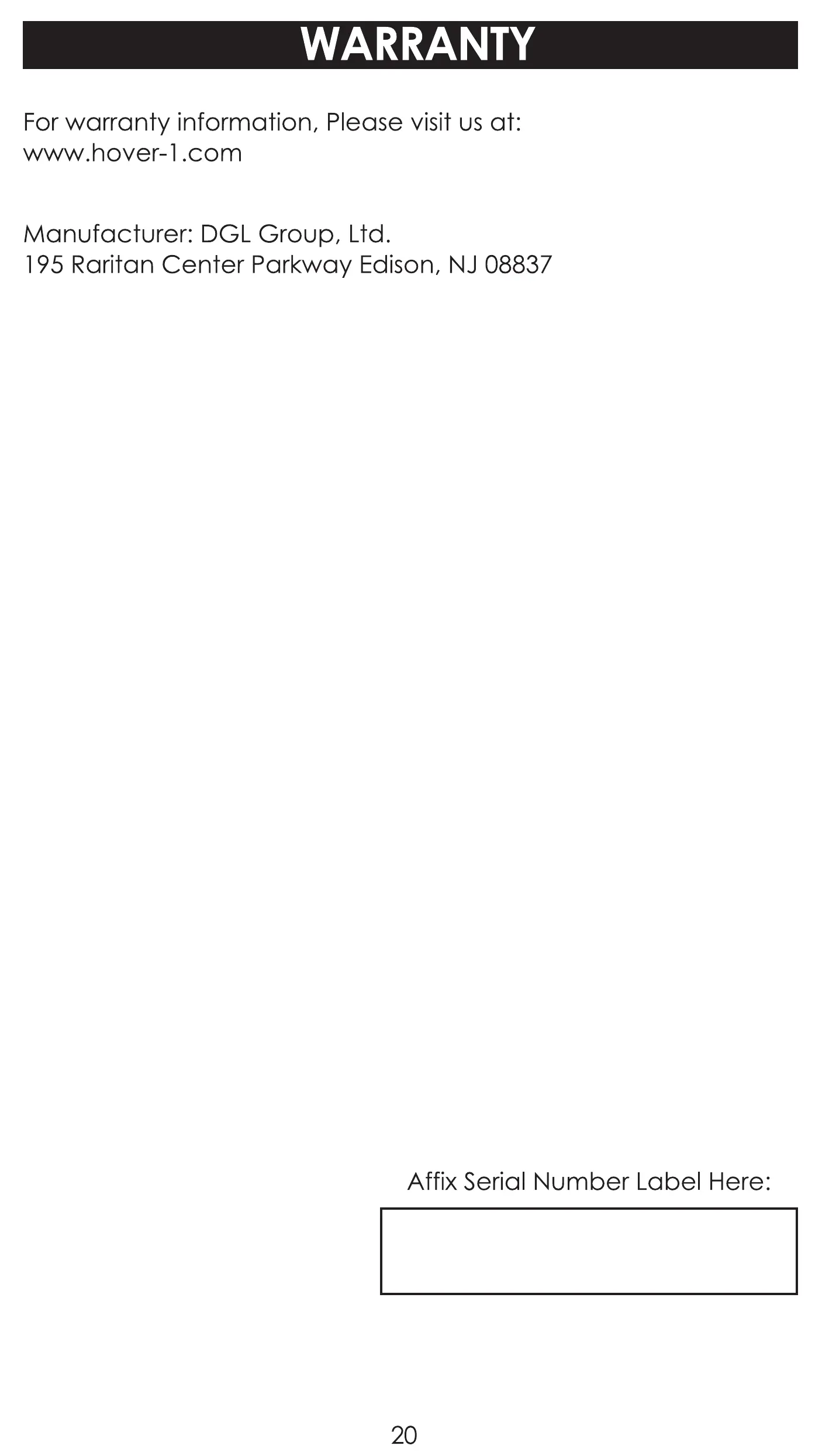 Affix Serial Number Label Here: