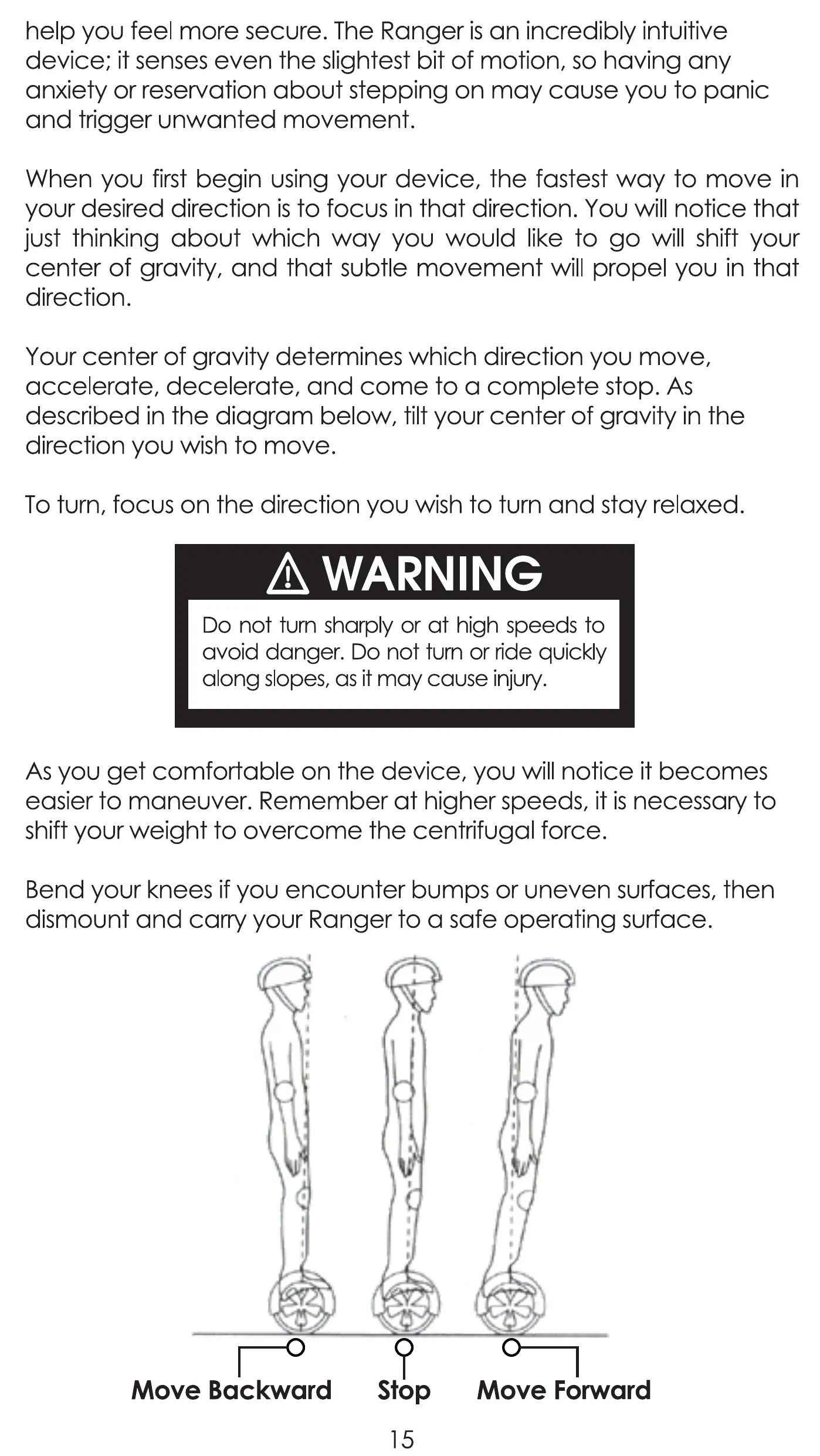 To turn, fOCUSon the direction you wish to turn and stay relaxed.