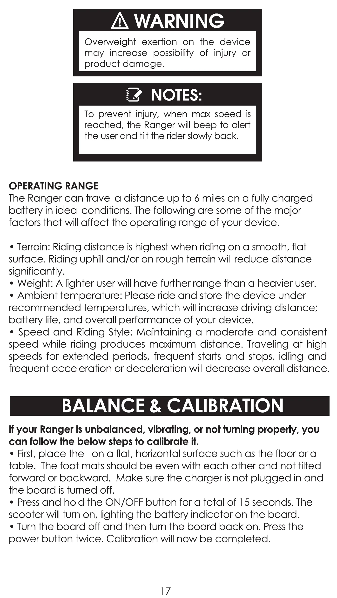 surface. Riding uphill and/or on rough terrain will reduce distance