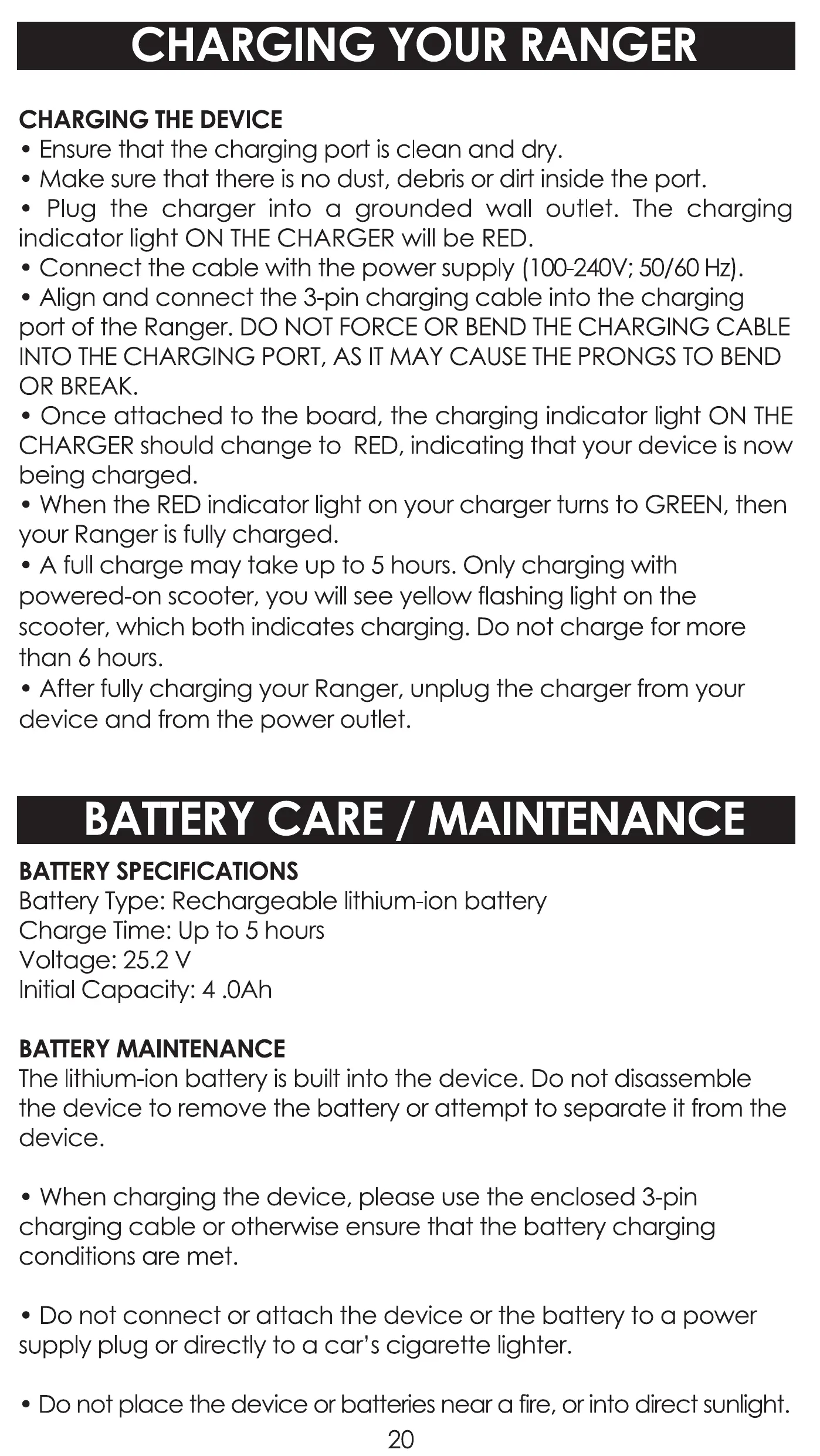 • After fully charging your Ranger, unplug the charger from your