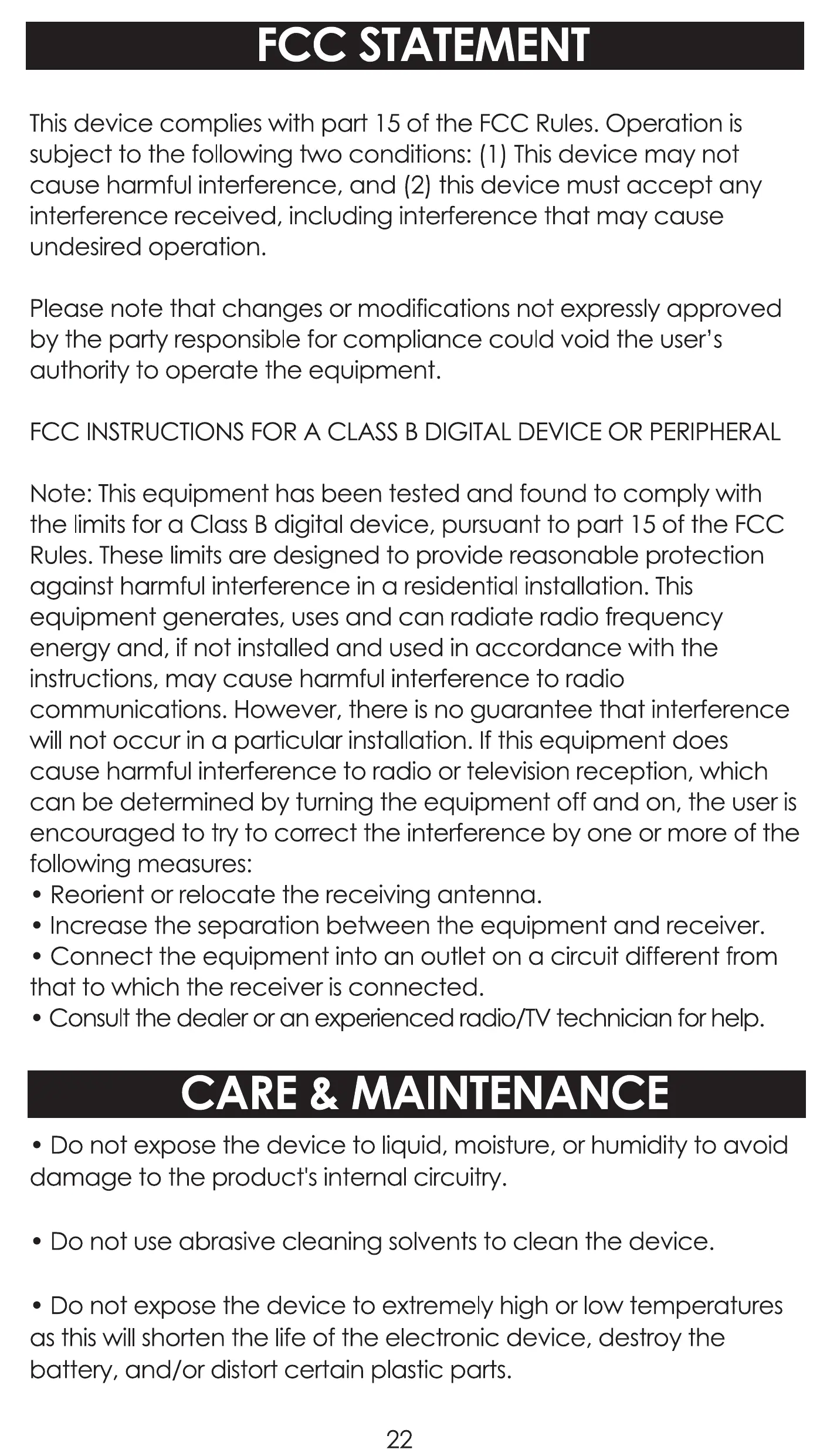 Do not expose the device to liquid, moisture, or humidity to avoid