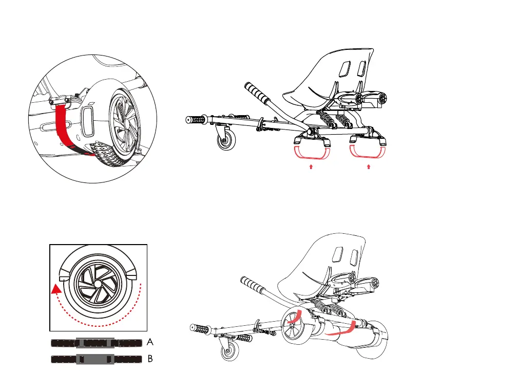 straps should be centered underneath the hoverboard, with side B (as shown in the diagram below) facing