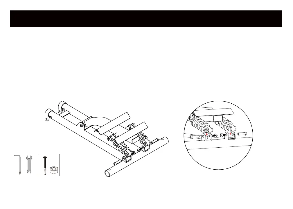 frame. You may need to twist the shocks to enure the holes at the end of the shocks align with the holes of