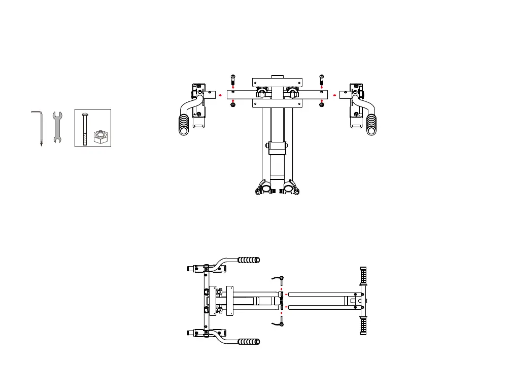 turn the nuts clockwise with the wrench to tighten them. Make sure the screws and nuts are tightly secured.