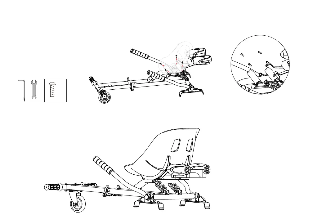 into the holes in the bucket seat and cap each screw with a 6 mm nut. Hold the screws in place with the hex key