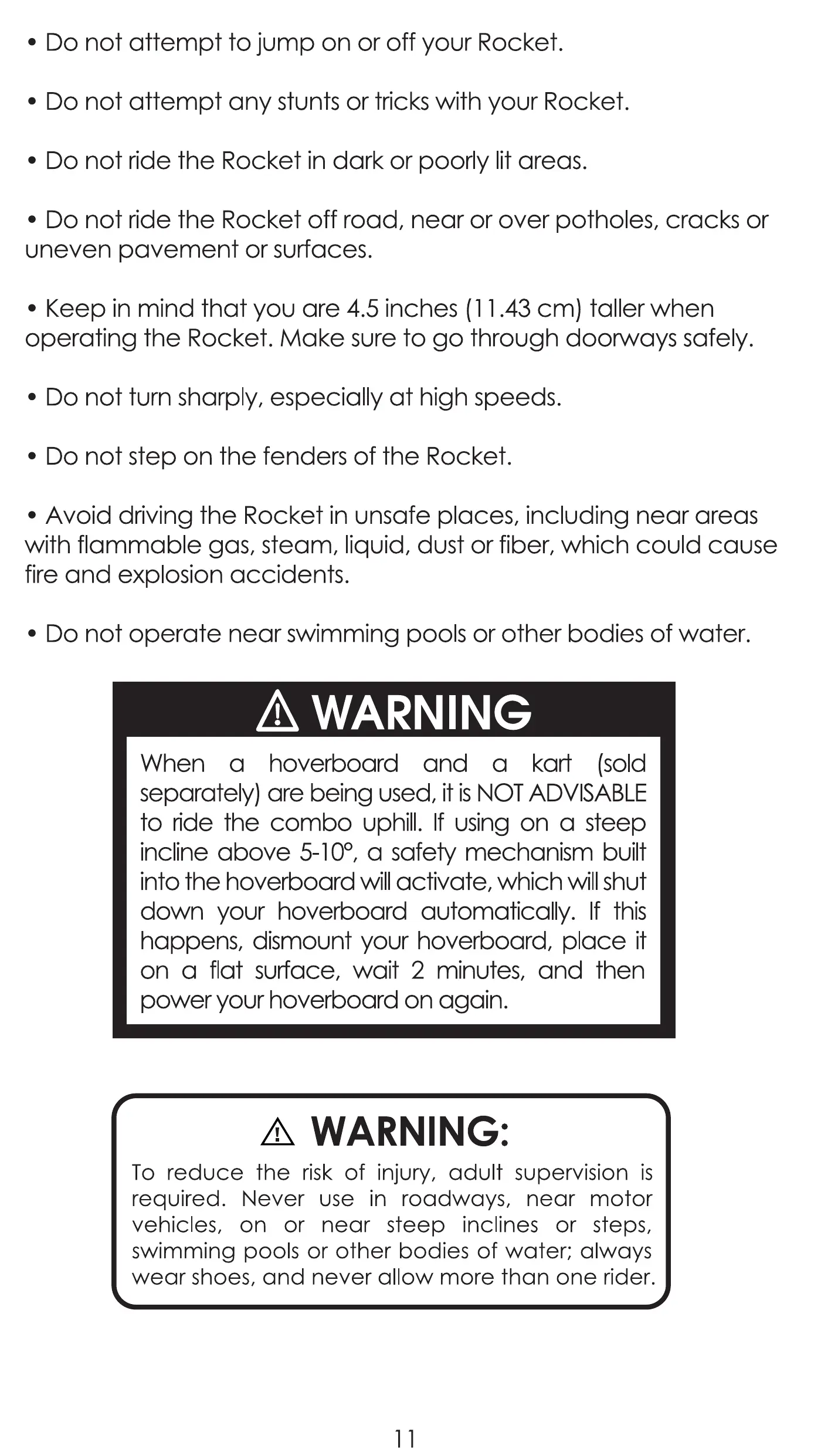 Do not ride the Rocket off road, near or over potholes, cracks or