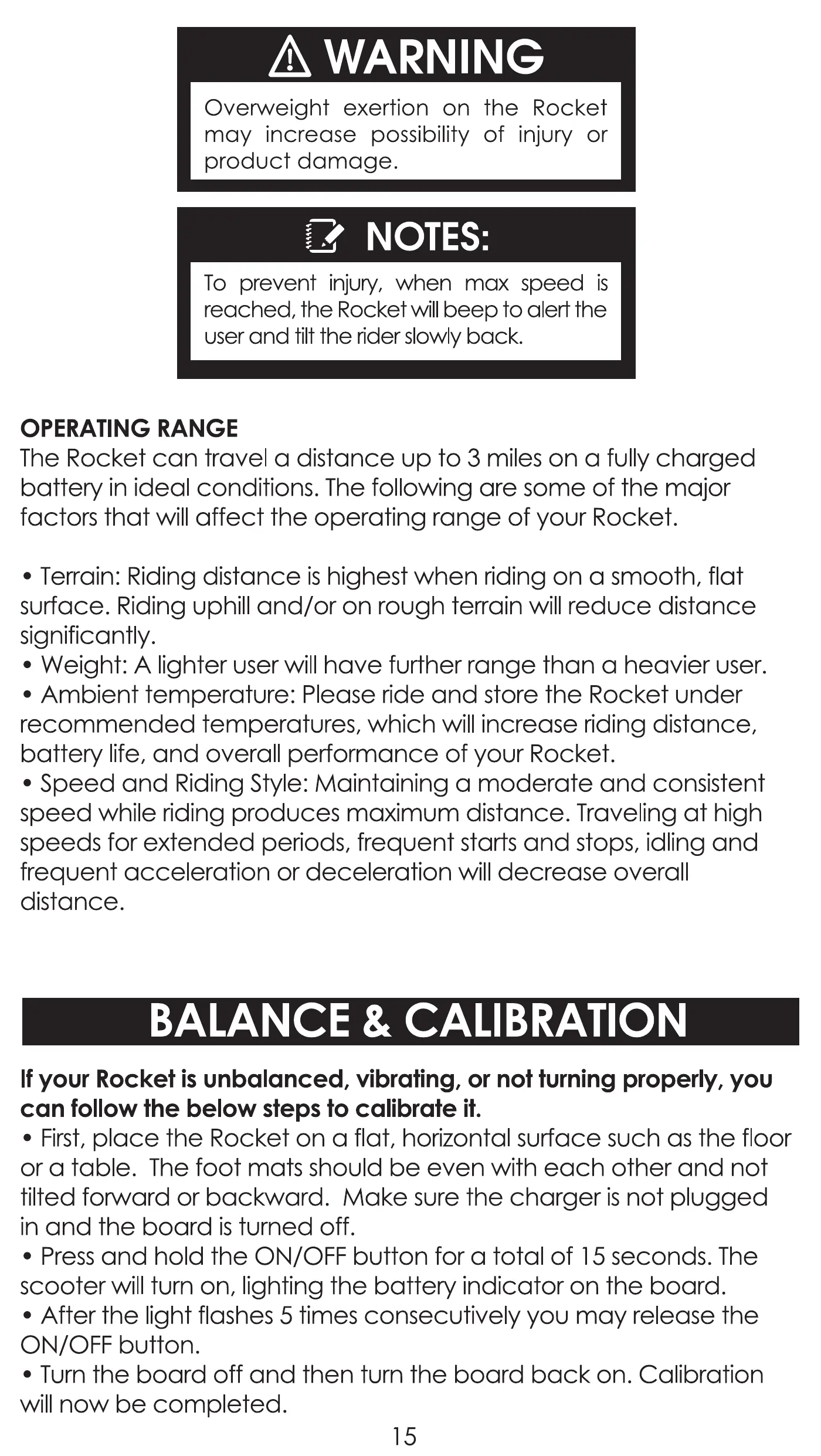 surface. Riding uphill and/or on rough terrain will reduce distance