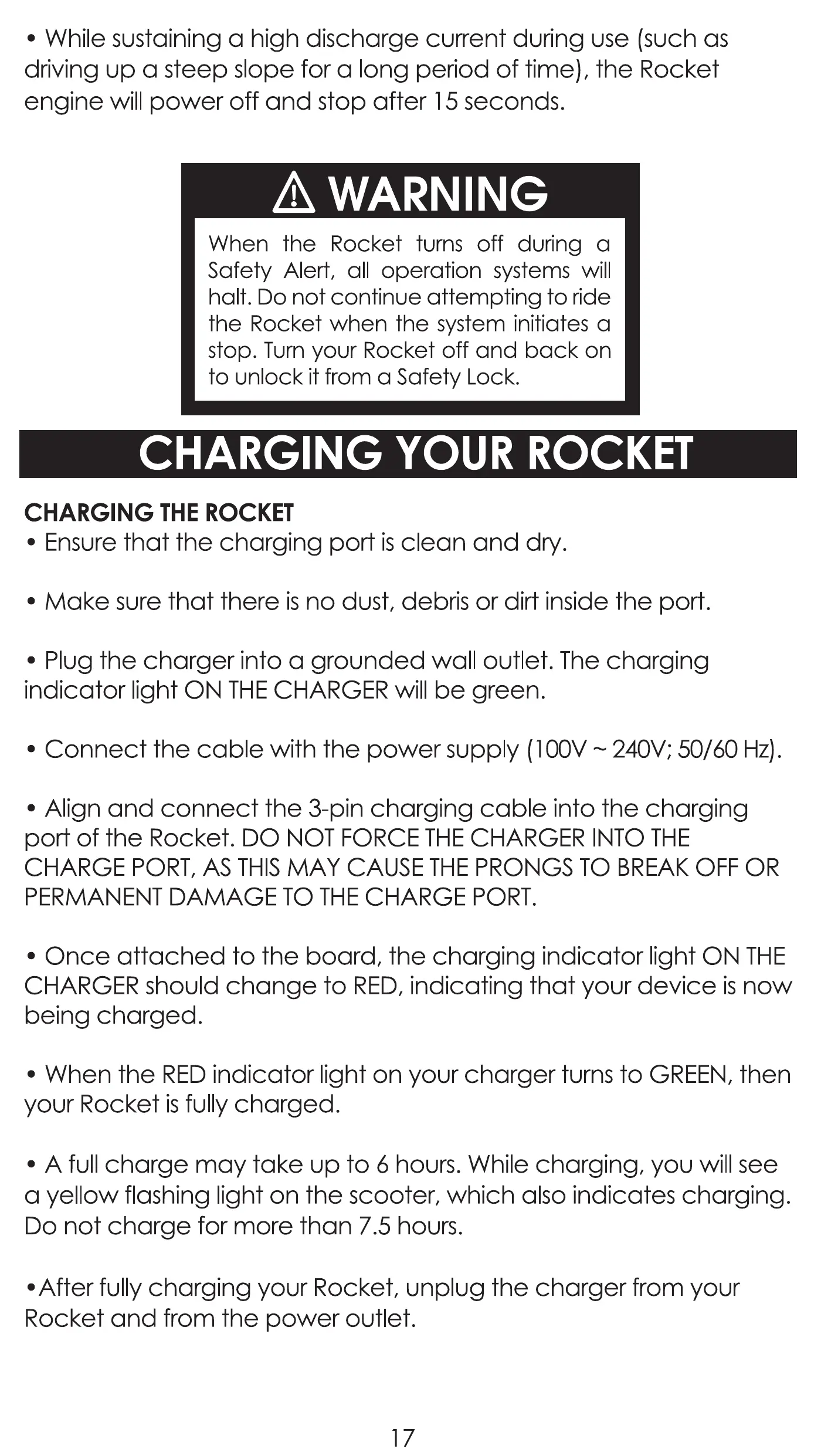 •After fully charging your Rocket, UnplCJCthe charger from your