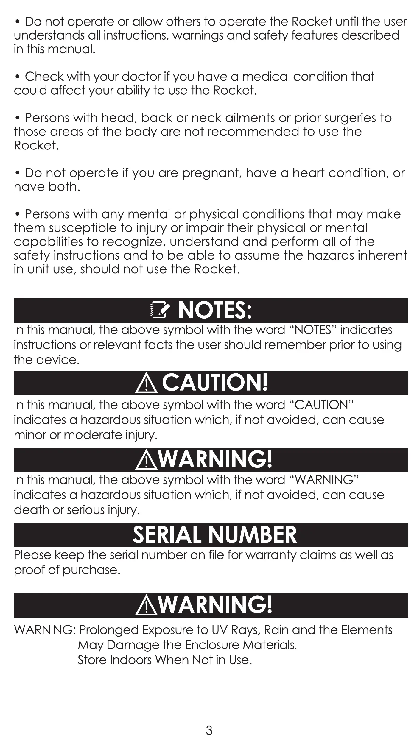 WARNING: Prolonged Exposure to UV Rays, Rain and the Elements