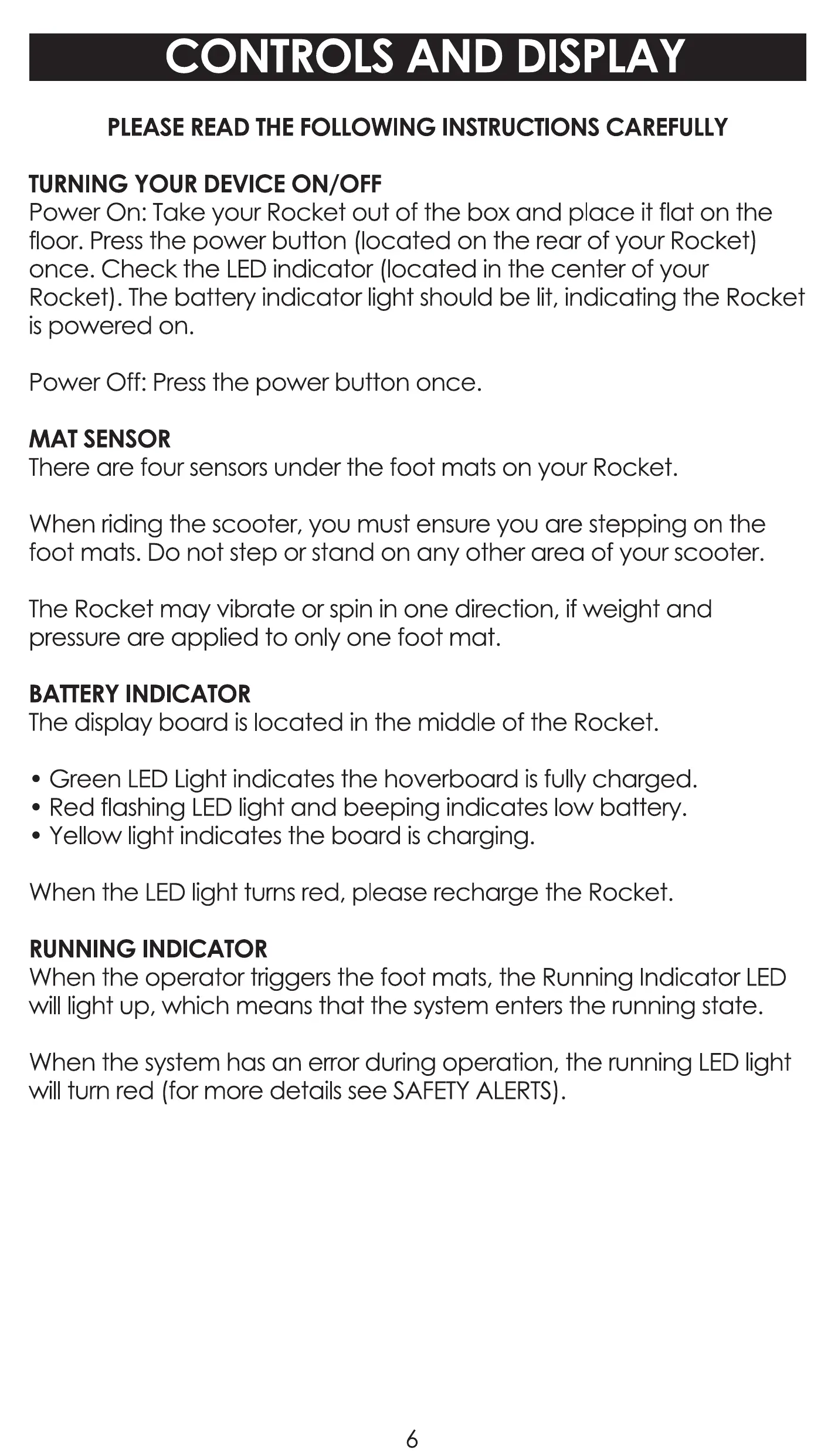 Rocket). The battery indicator light should be lit, indicating the Rocket