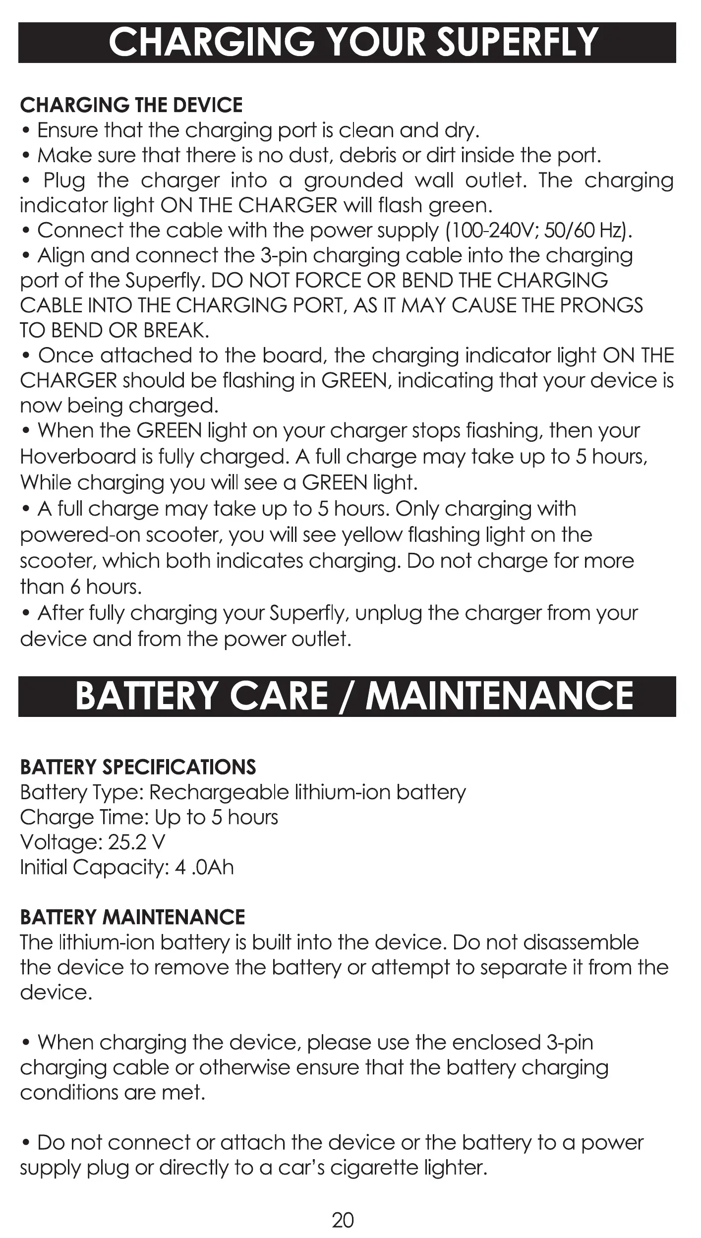 After fully charging your Superfly, UnplCJg the charger from your