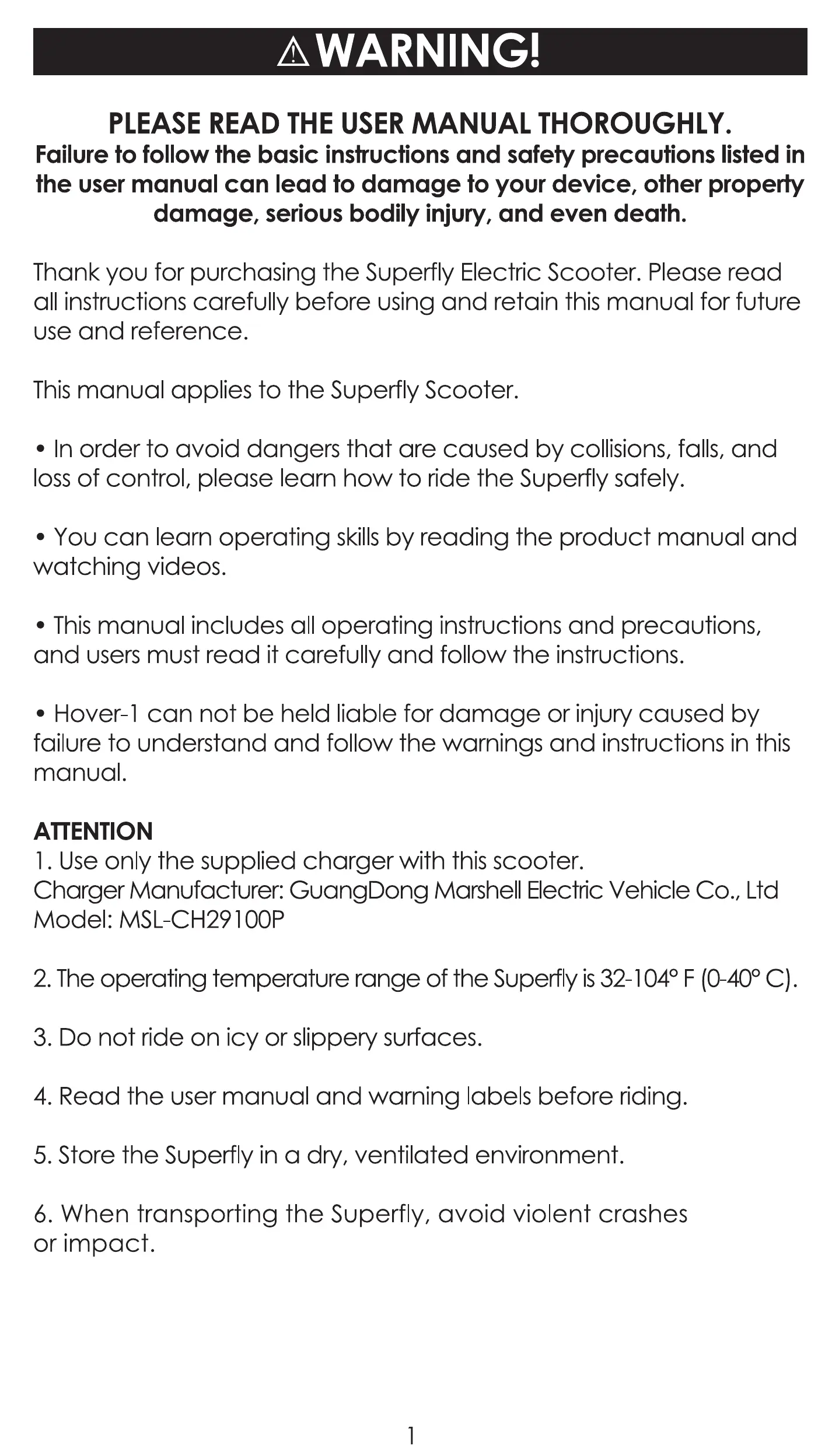Thank you for purchasing the Superfly Electric Scooter. Please read