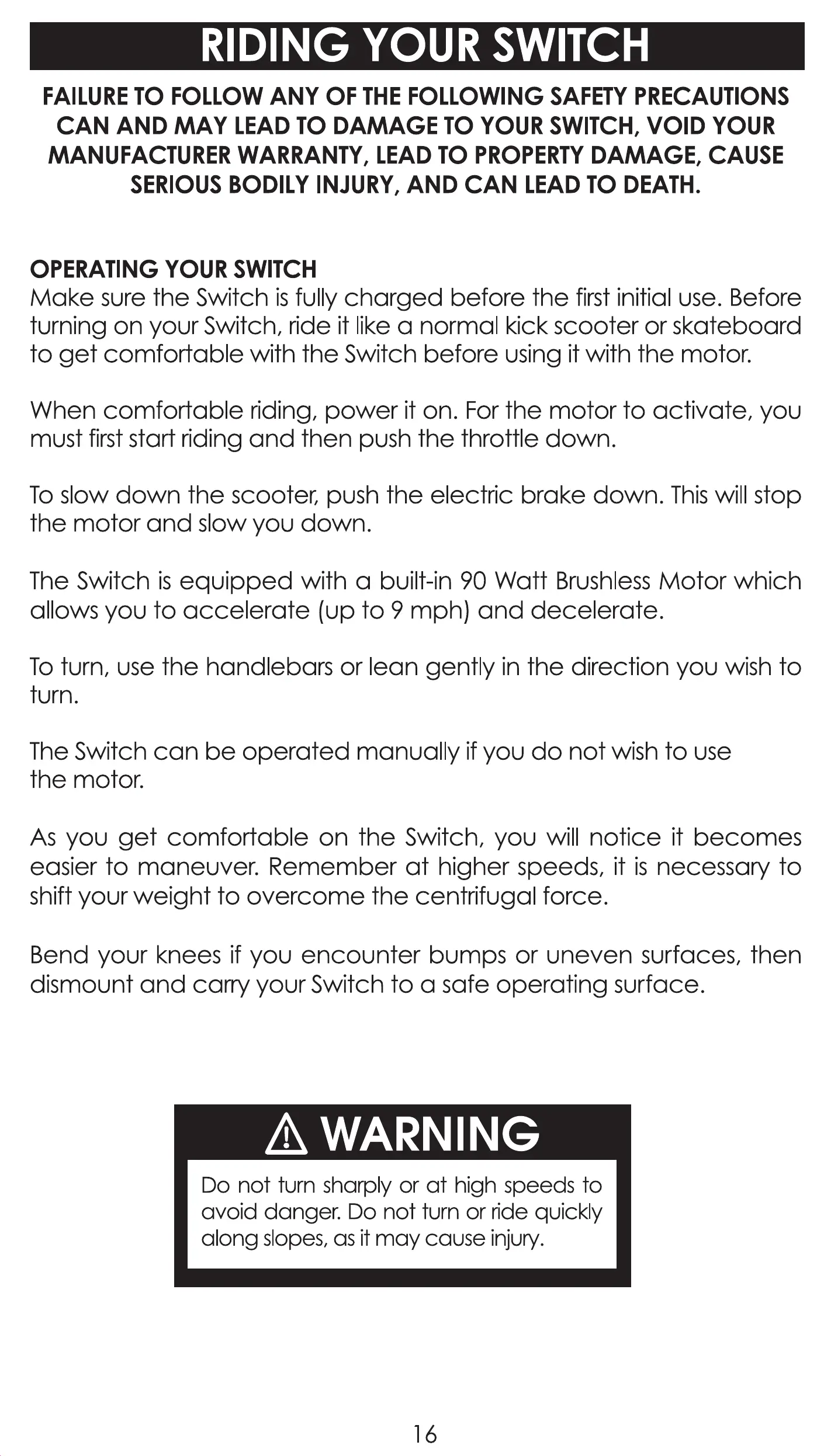 turning on your Switch, ride it like a normal kick scooter or skateboard