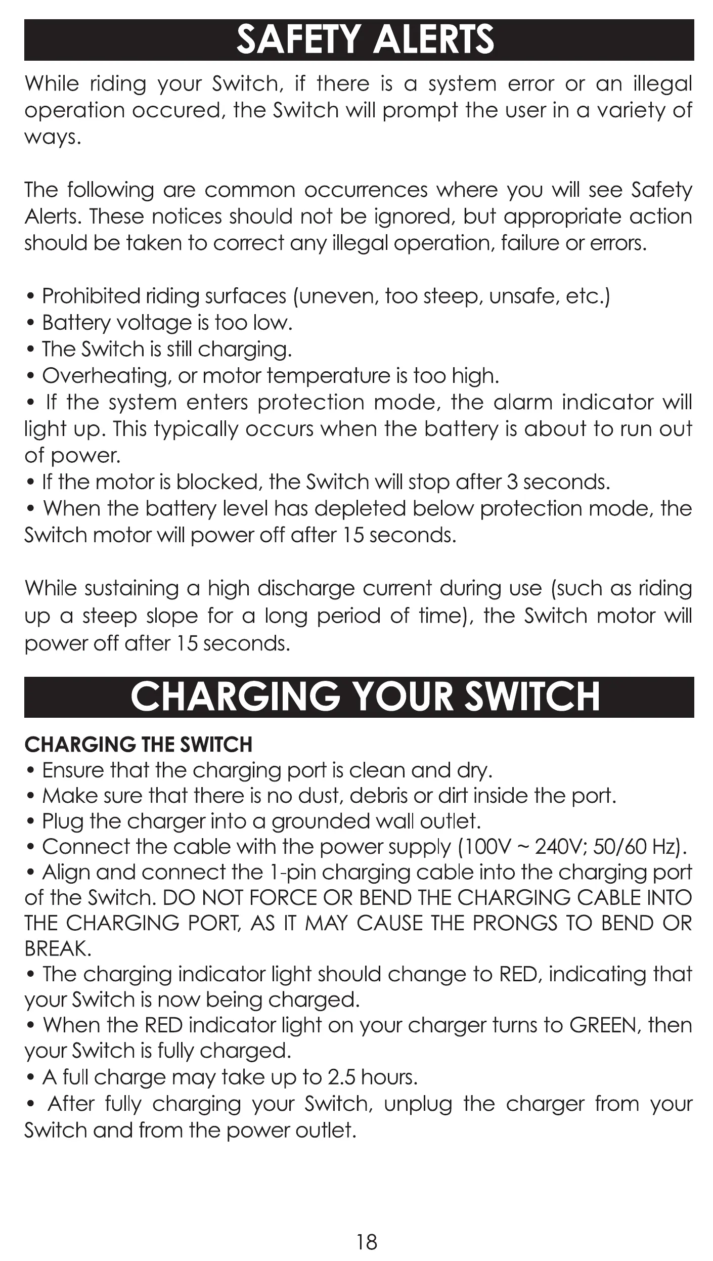of the Switch. DO NOT FORCE OR BEND THE CHARGING CABLE INTO