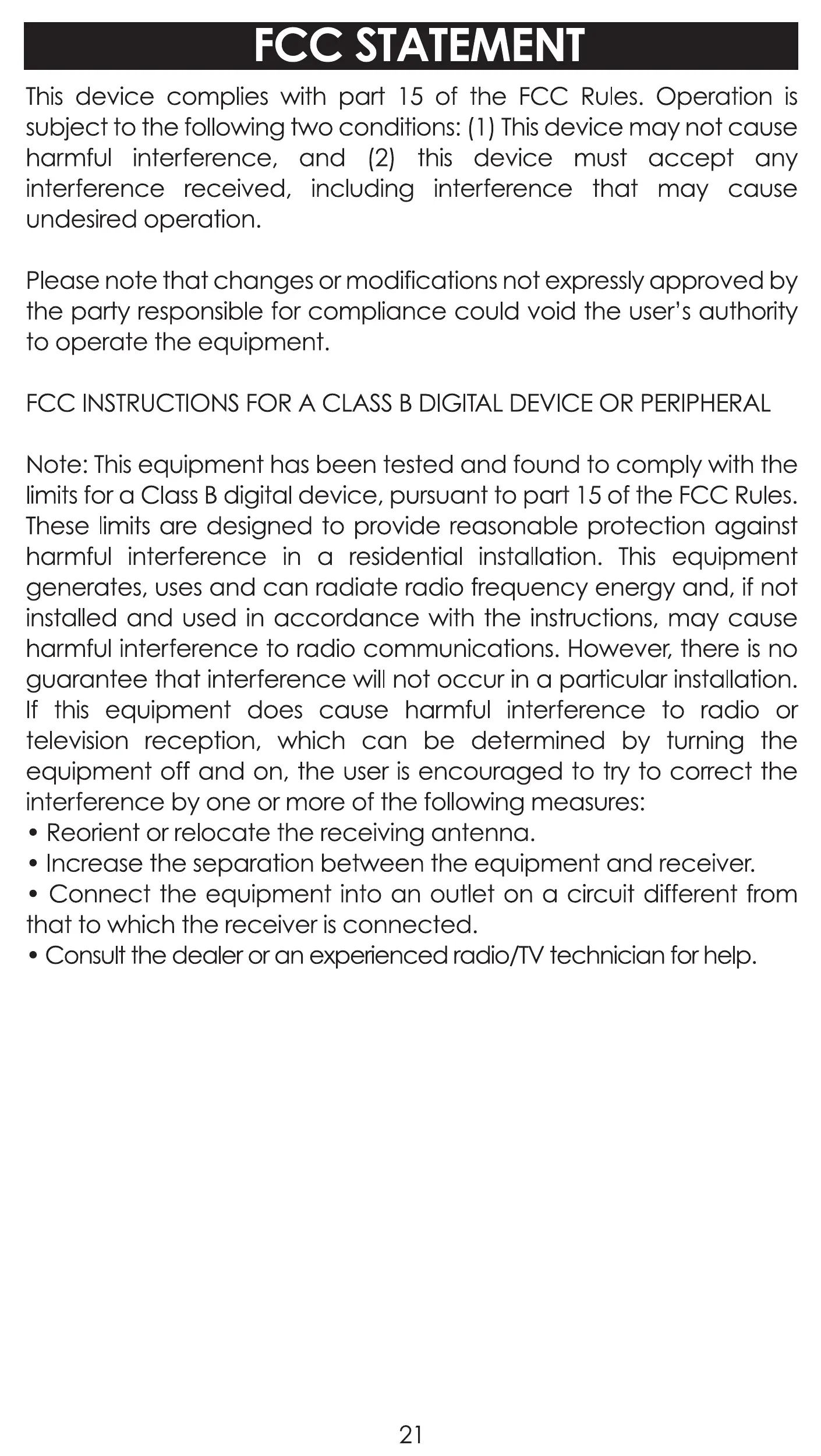 FCC INSTRUCTIONS FOR A CLASS B DIGITAL DEVICE OR PERIPHERAL