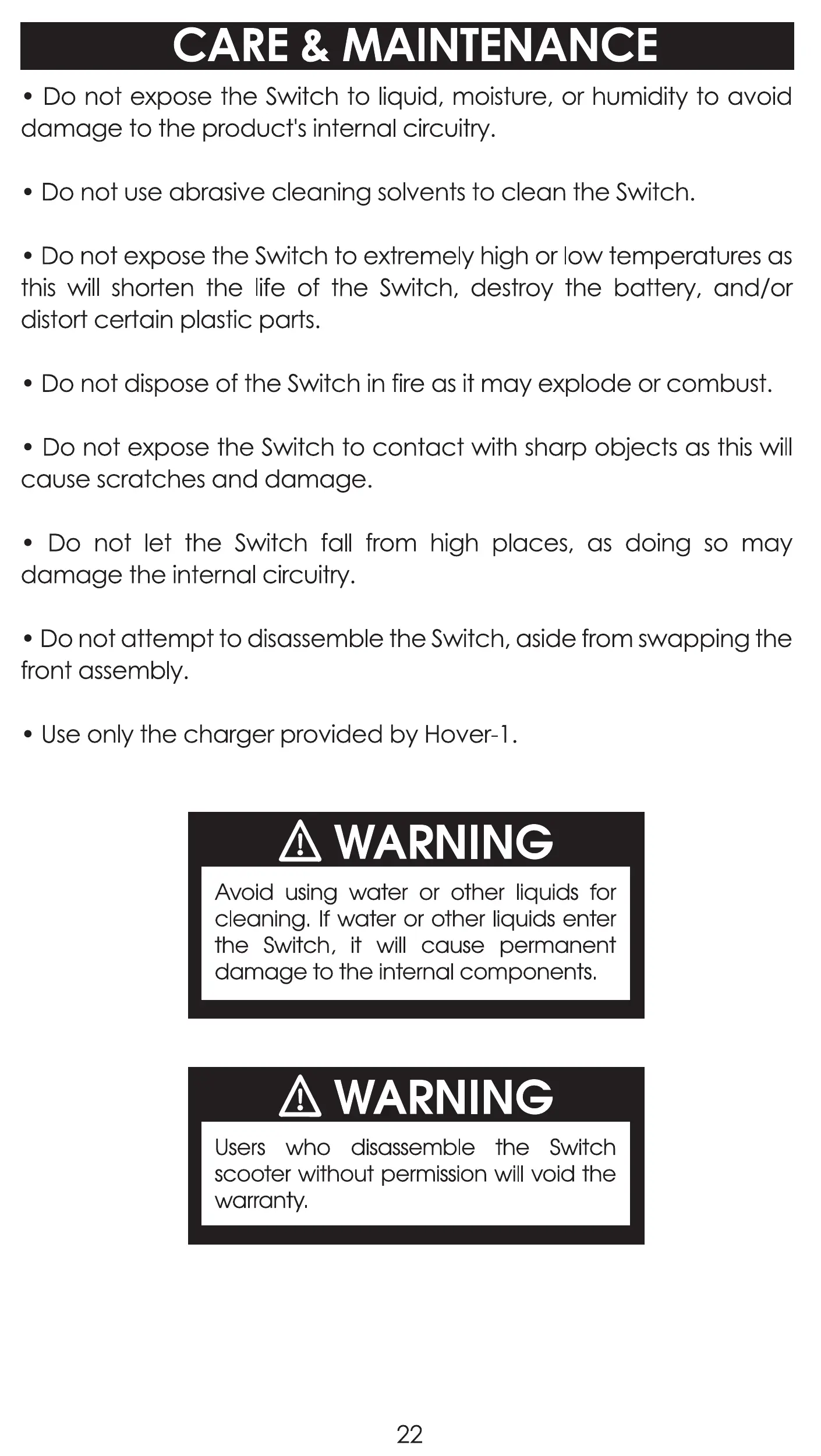 Do not expose the Switch to liquid, moisture, or humidity to avoid