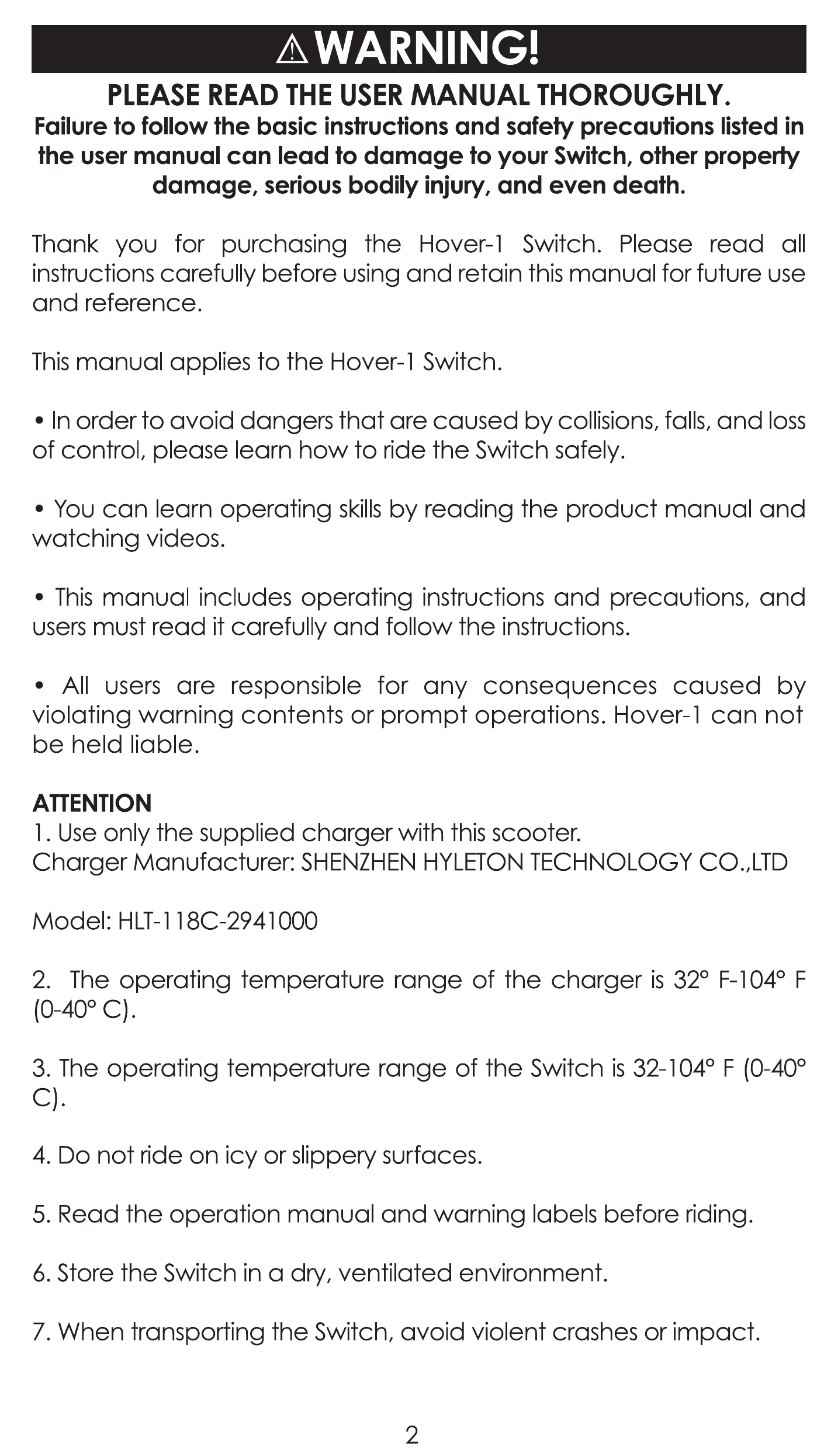 Thank you for purchasing the Hover-I Switch. Please read all