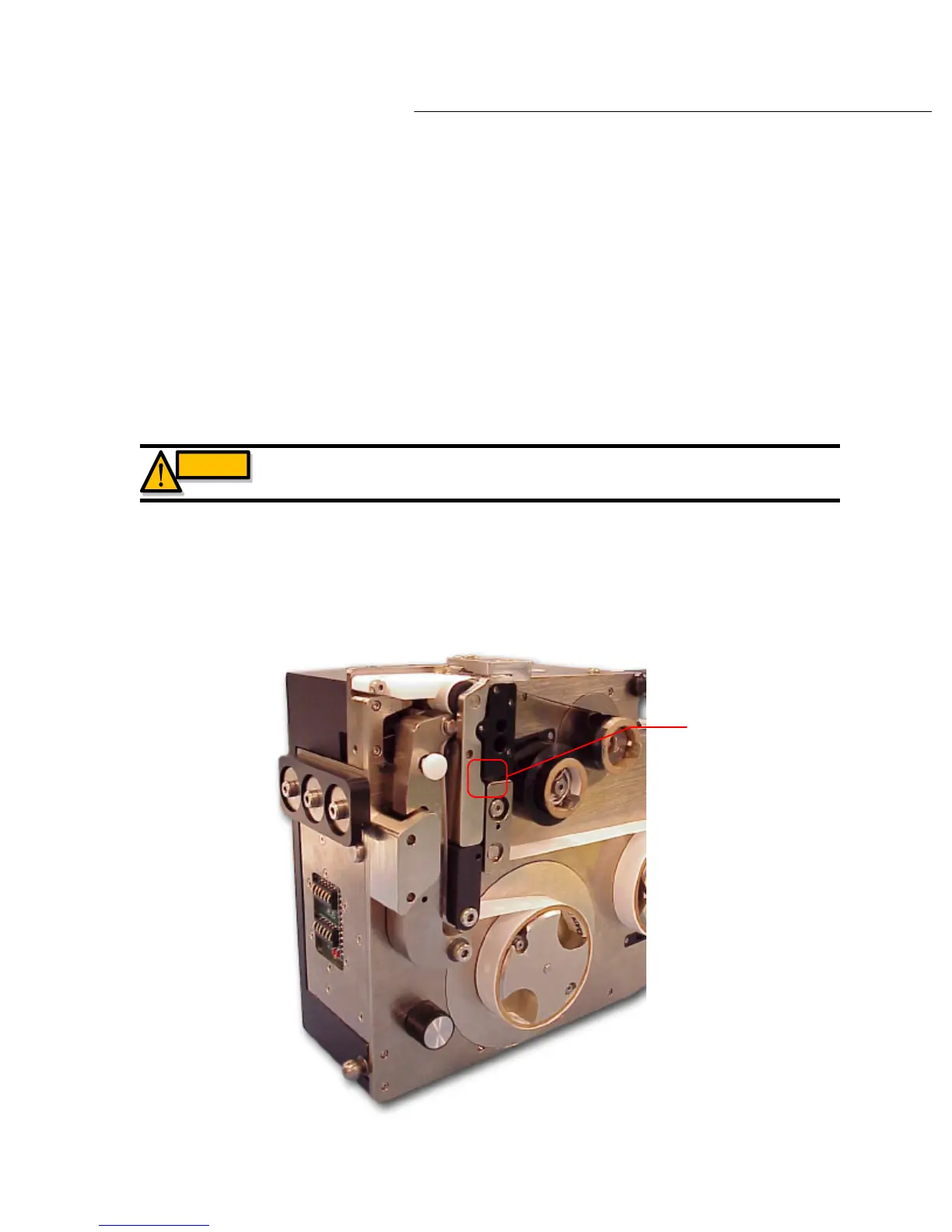 To do so, remove the cover from the PL1200 labeling unit. Spin the manual advance knob
