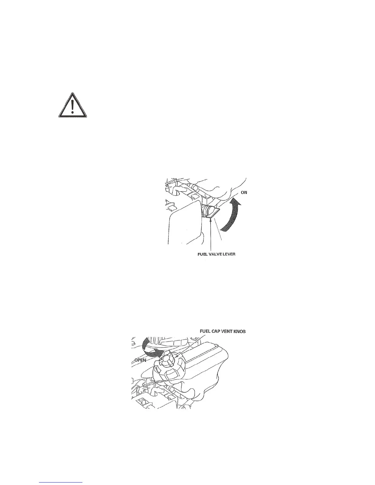 Open the fuel tank vent by turning the vent knob at least 2 or 3 turns counterclockwise.