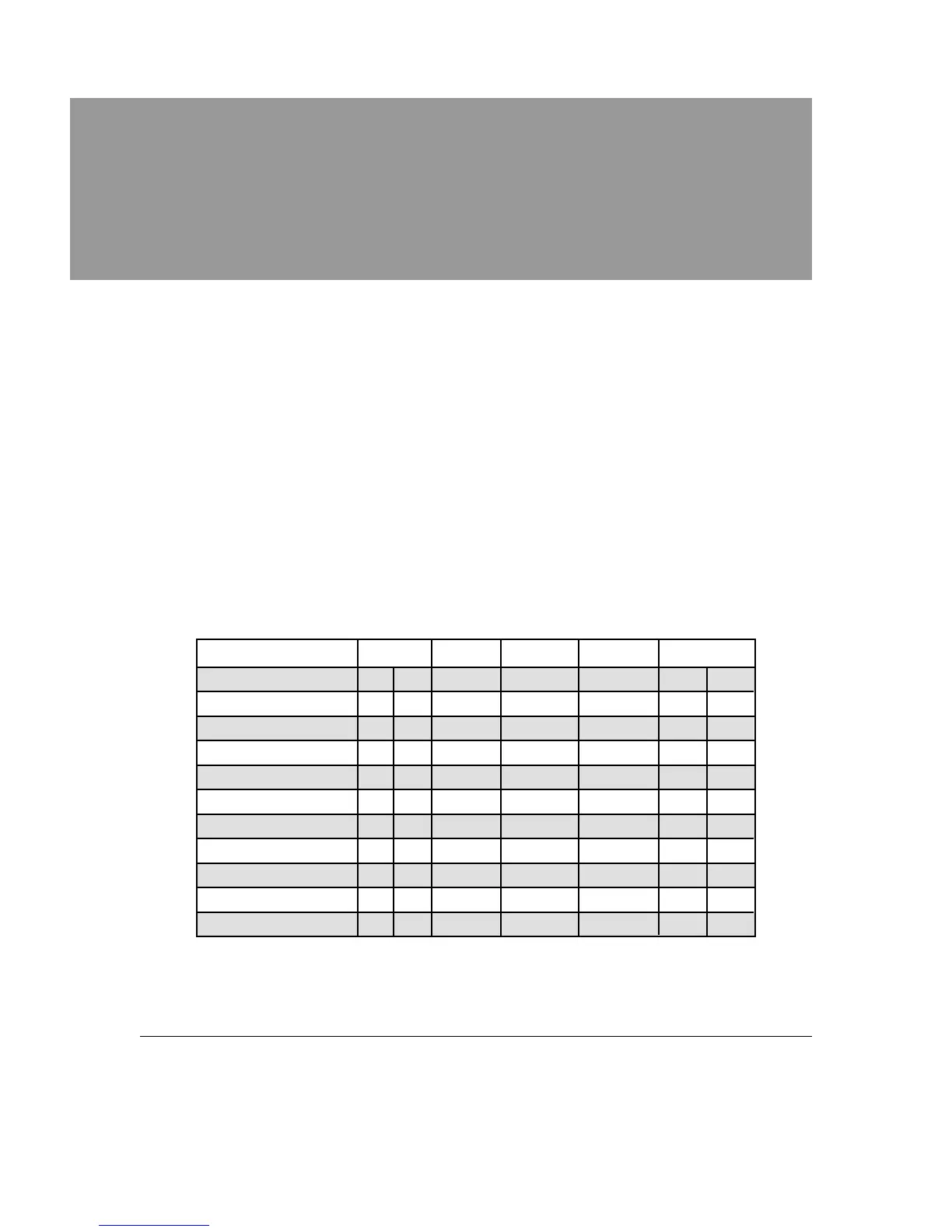 The following chart indicates the standard program values of the factory