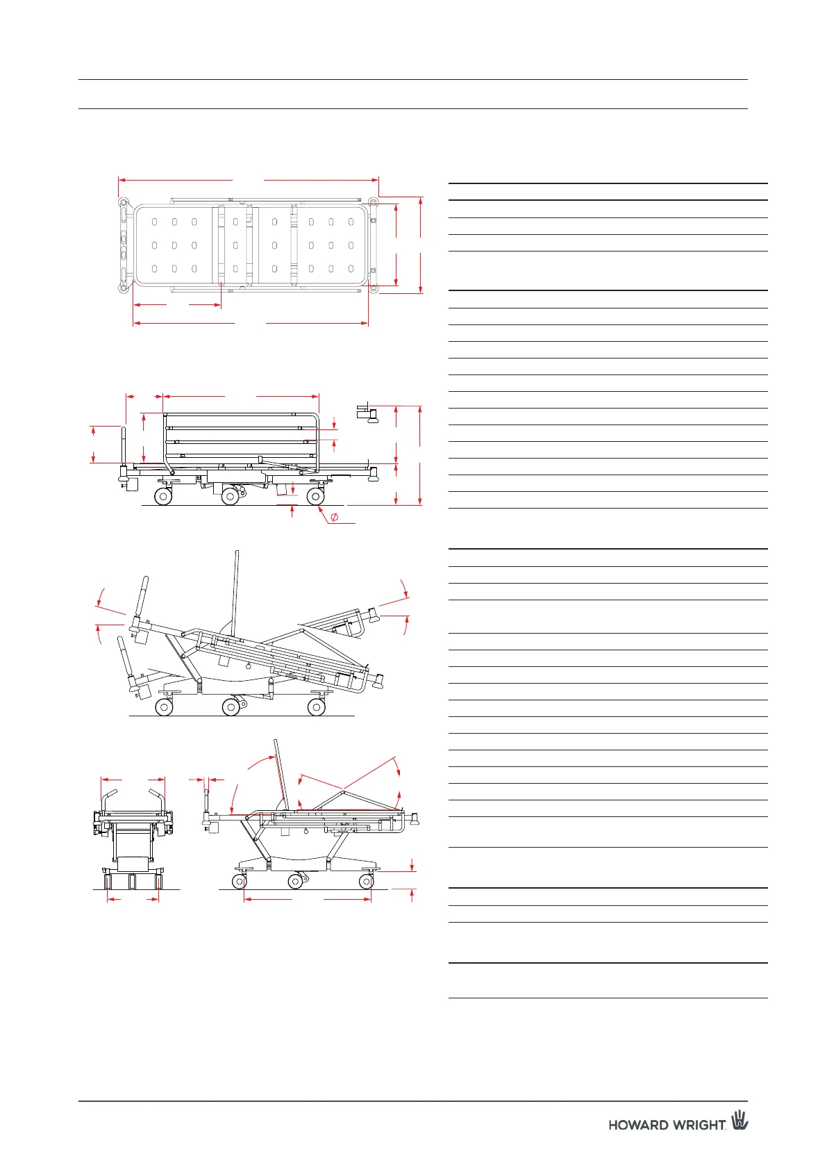 MAXIMUM SWL: 250kg (incl. patient & accessories)