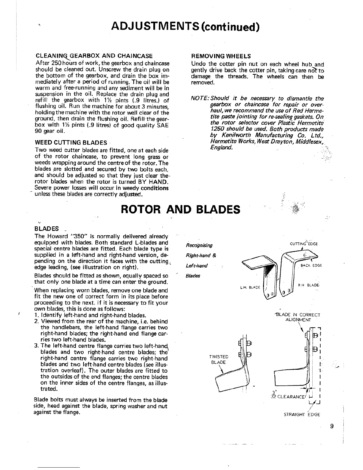 Howard 350 - Gearbox, Blades and Wheel Adjustments; Gearbox and Chaincase Cleaning; Weed Cutting Blades Adjustment