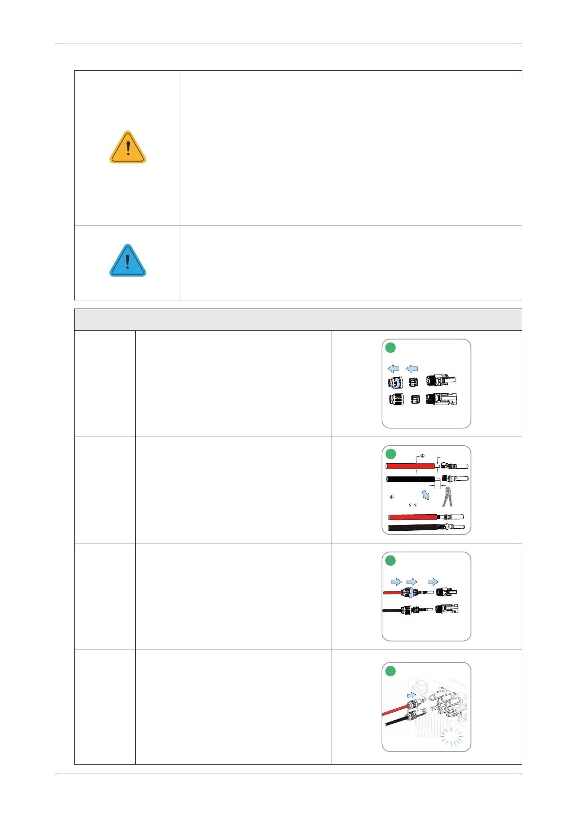 • Use the PV connectors in the accessory box for PV connections. Damage to