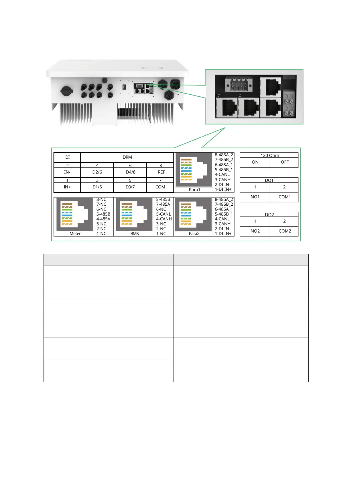 BMS (CANH, CANL, 485A, 485B) For Li-ion batteries, communication is via CAN or RS485.