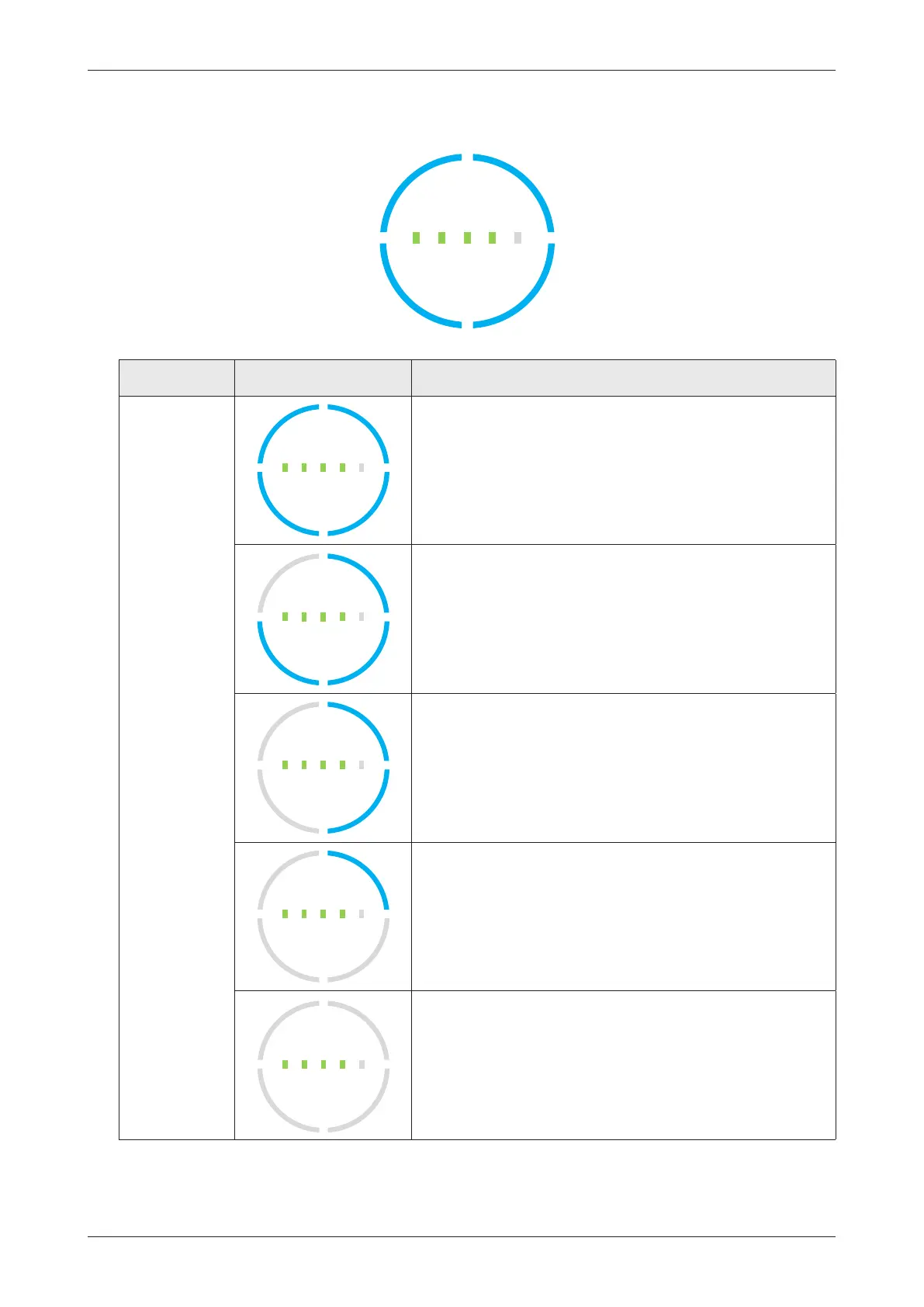 Full circle LEDs blink – SOC is 75-100%; battery is charging