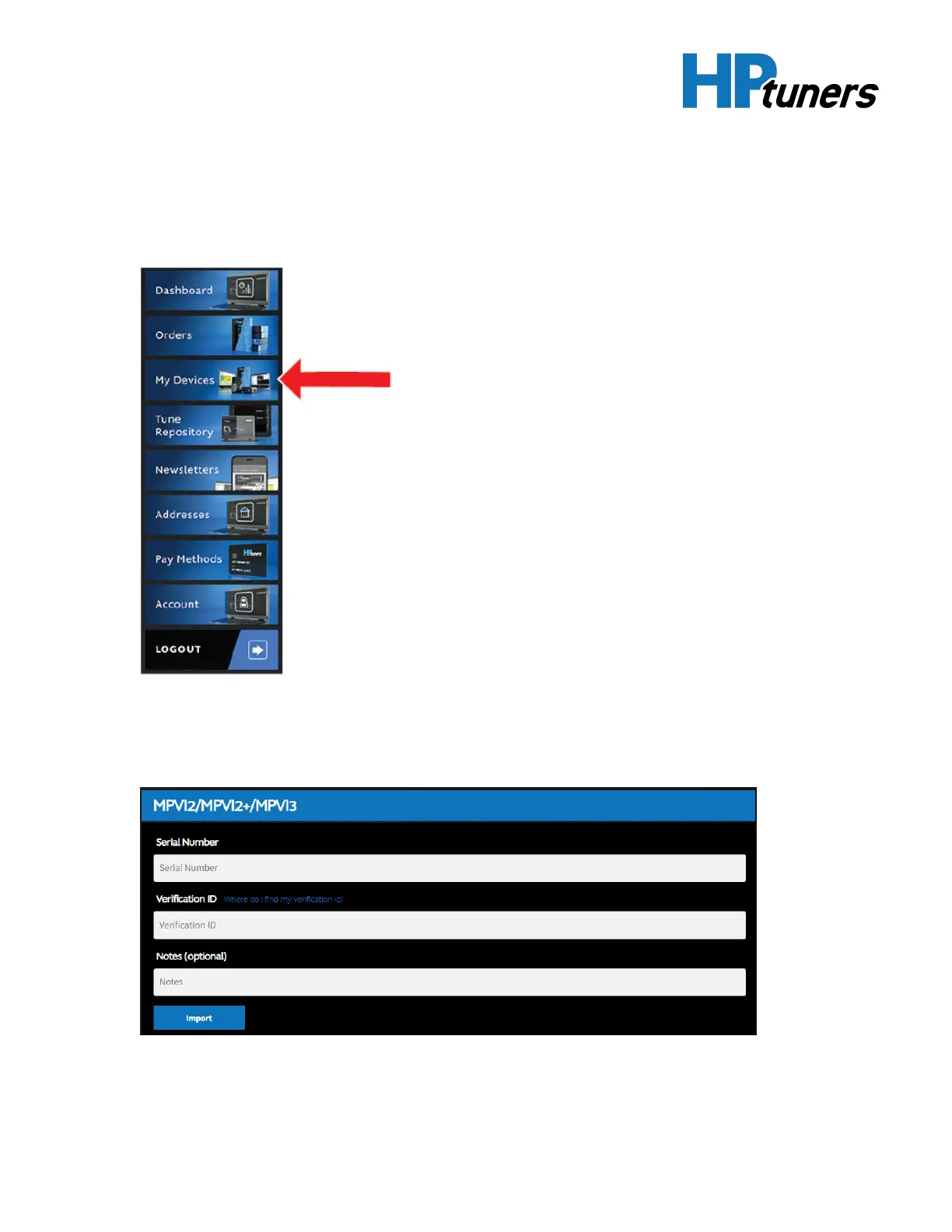 9. In the fields under the MPVI2/MPVI2+/MPVI3 heading, enter the serial number and