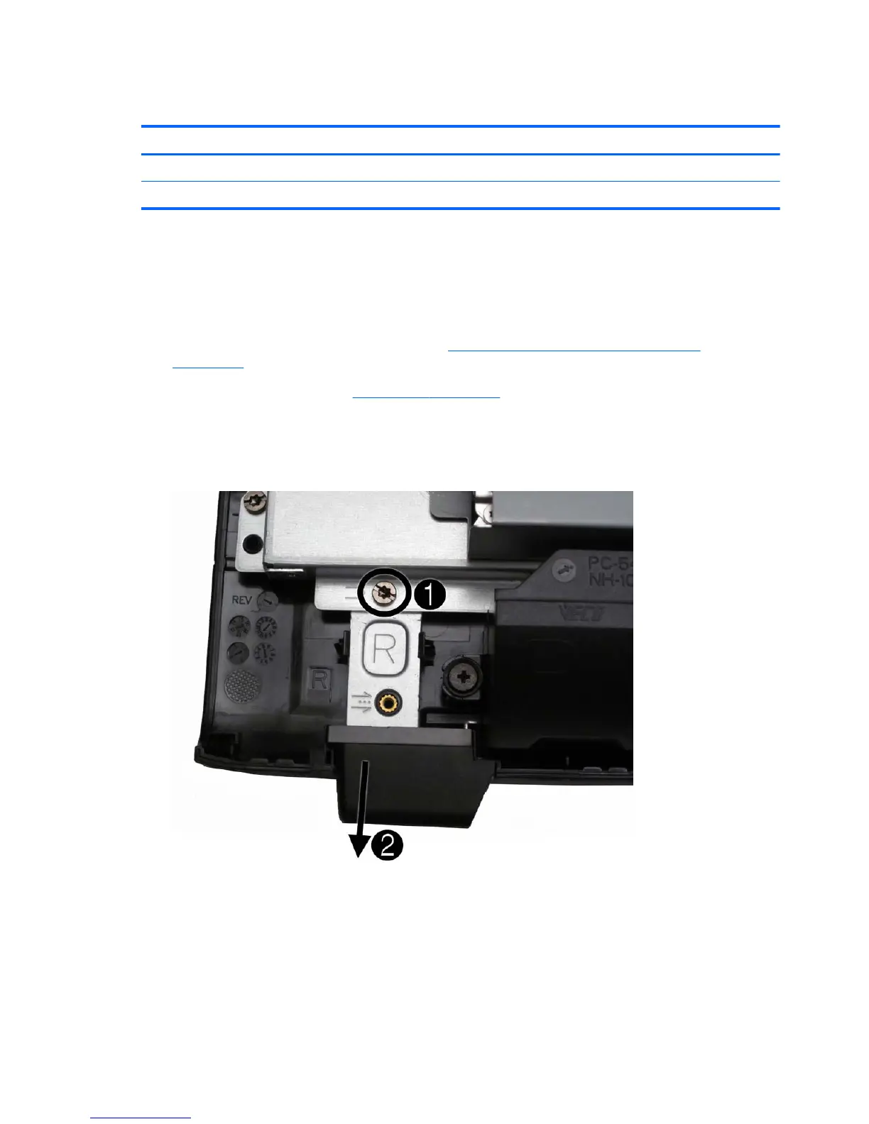 3. For each foot, remove the Torx T15 3.0x6.0 screw (1) that secures the foot to the computer.