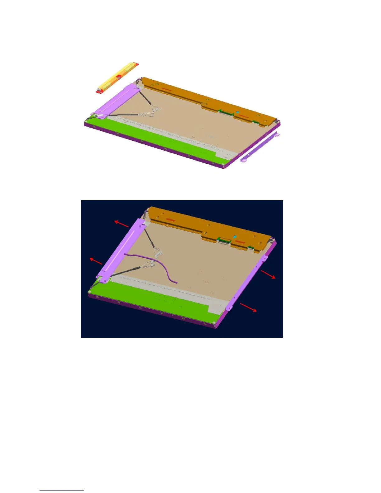 7. Remove the four screws from the LCD brackets, and then remove them from the LCD module.