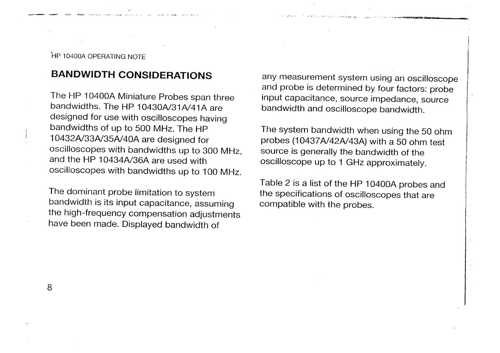 HP 10430A - Bandwidth Considerations