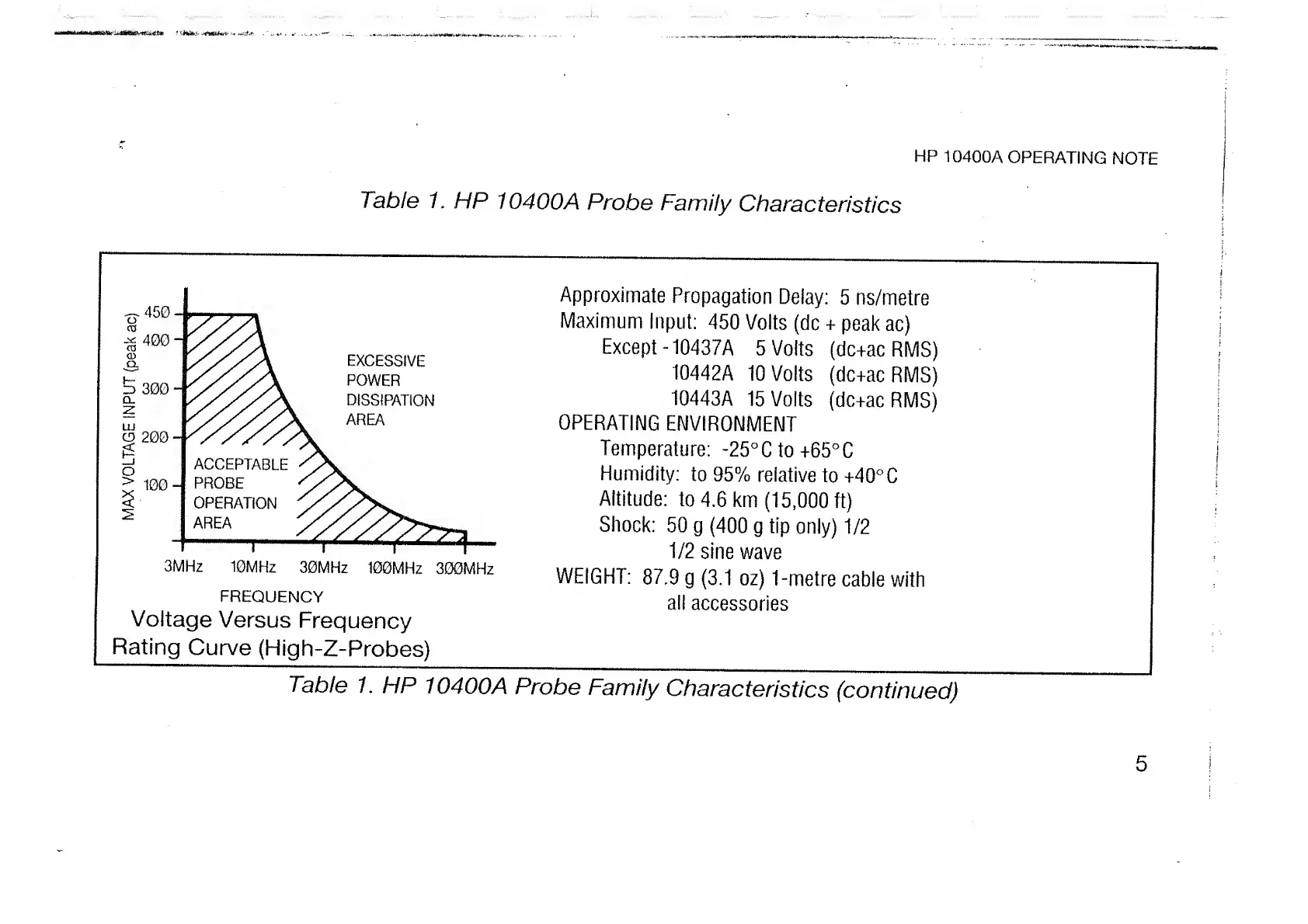 HP 10430A - Table 1. HP 10400 A Probe Family Characteristics