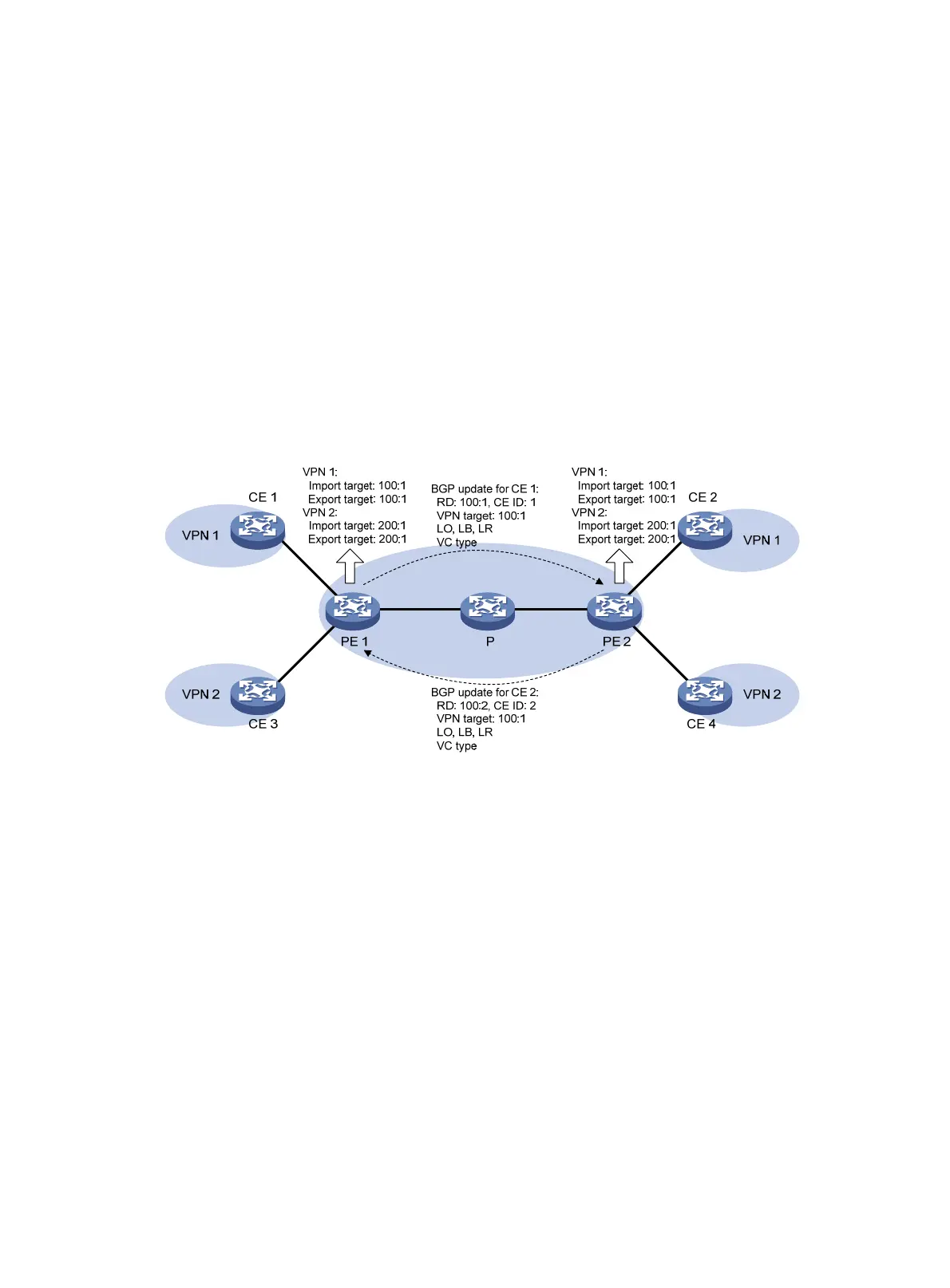 targets for the two VPNs to make sure CEs in the same VPN can set up a VC and CEs in different VPNs