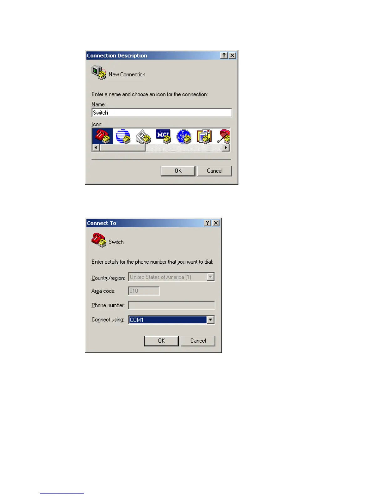 3. Select the serial port to be used from the Connect using list, and click OK.