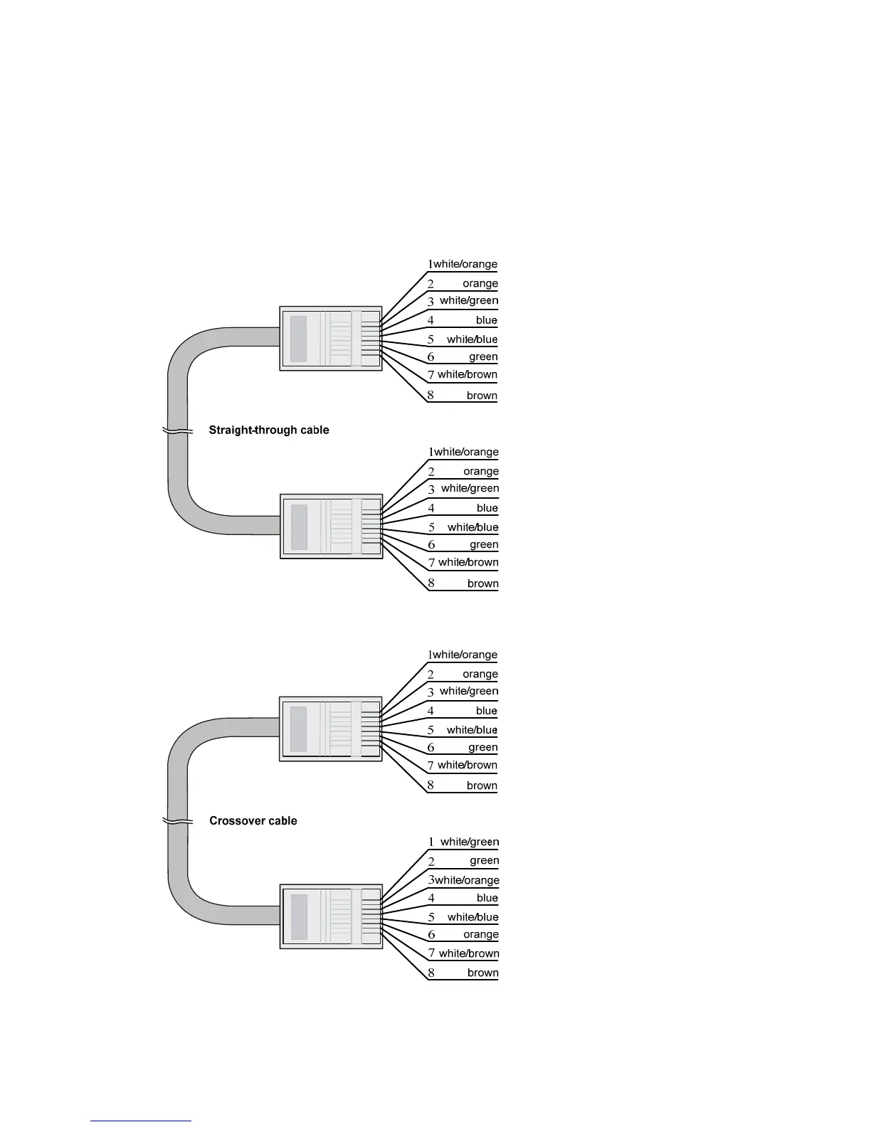 • Straight-through—The pinouts at both ends comply with standard 568B, as shown in Figure 47.
