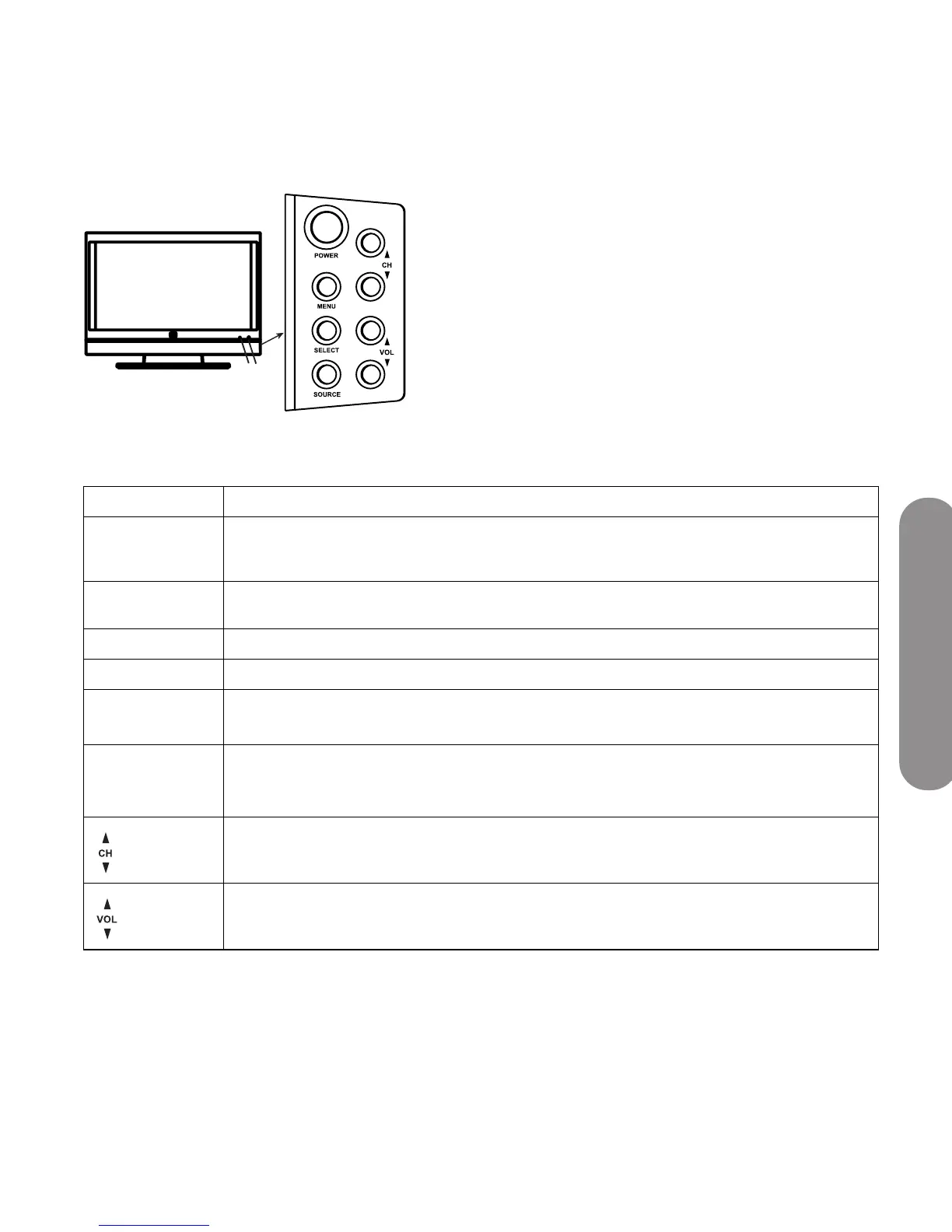 The TV indicators are located on the front of the TV, and the buttons are located on the right side.