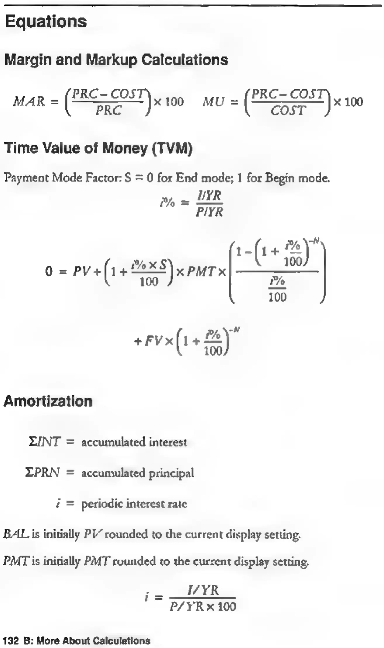 HP 10bII - Equations; Margin and Markup Calculations; Time Value of Money (ТУМ); Amortization