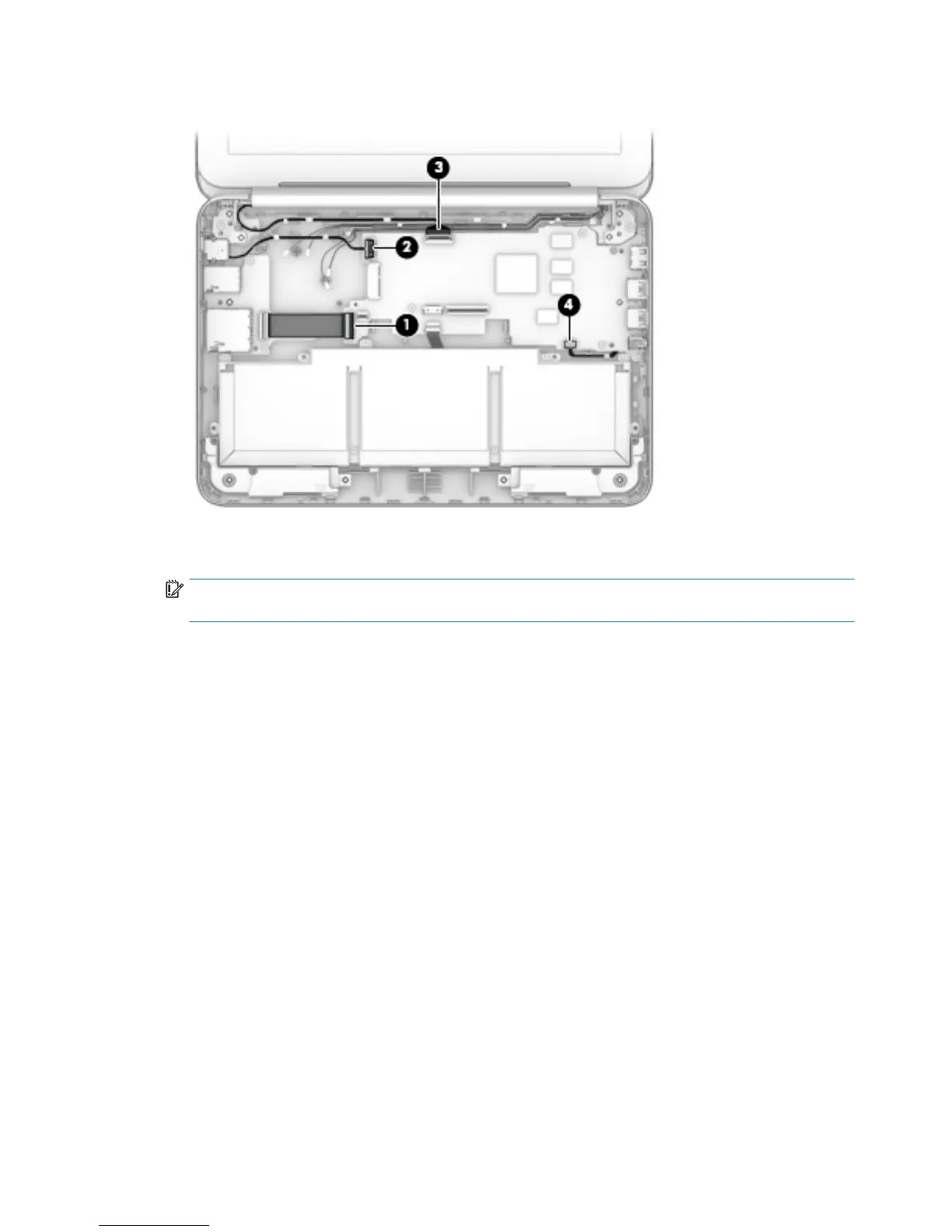 4. Disconnect the speaker cable (4) from the system board.