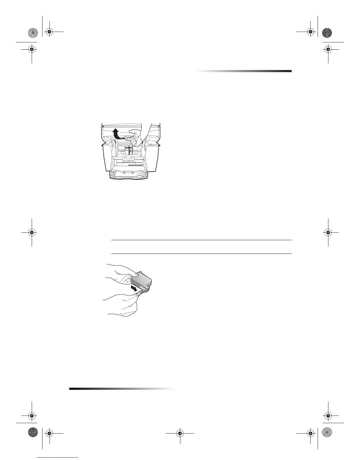 the top of the old print cartridge (the thinner one), and pull it up and out of its slot.