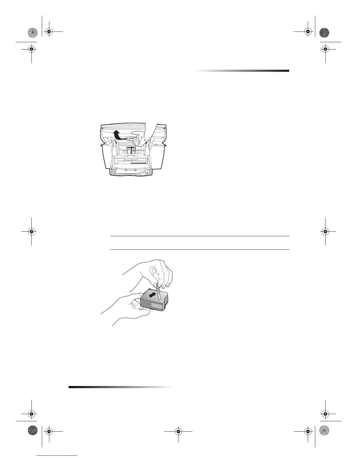 the top of the old print cartridge (the thicker one), and pull it up and out of its slot.