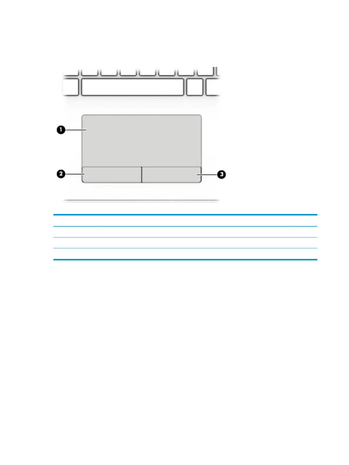 (1) TouchPad zone Reads your nger gestures to move the pointer or activate items on the screen.