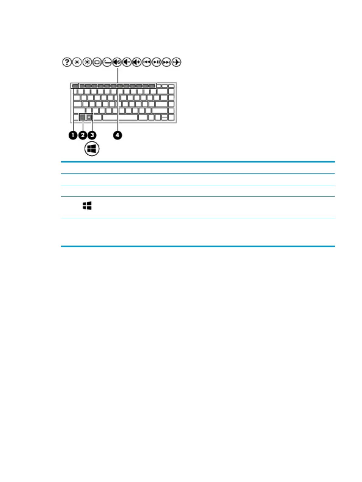 (1) esc key Displays system information when pressed in combination with the fn key.