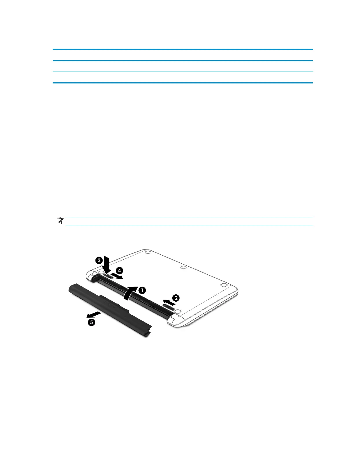 4. While pressing on the outside edge of the battery release latch (3), slide the latch (4) to release the